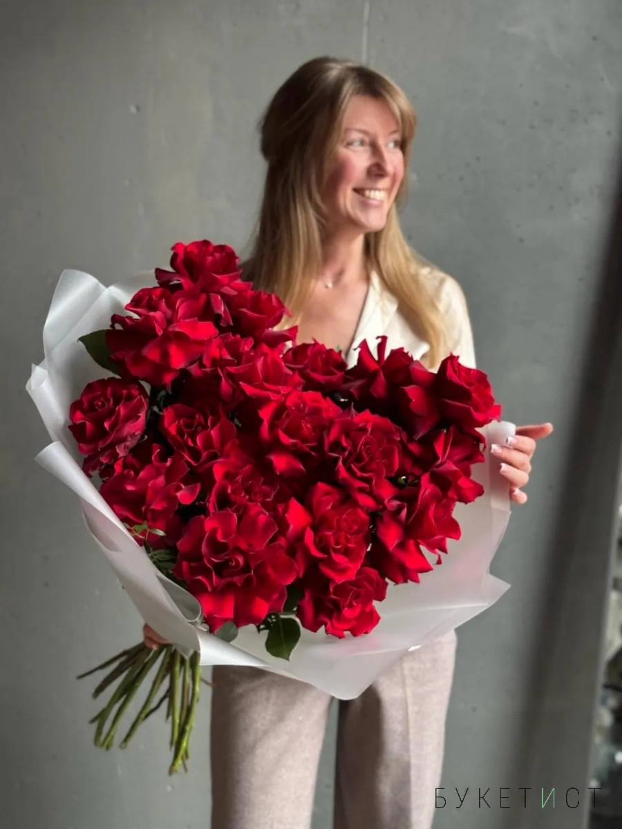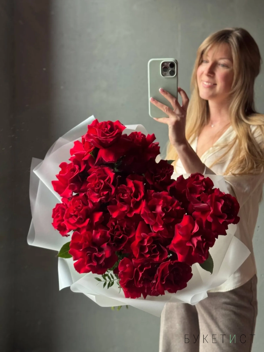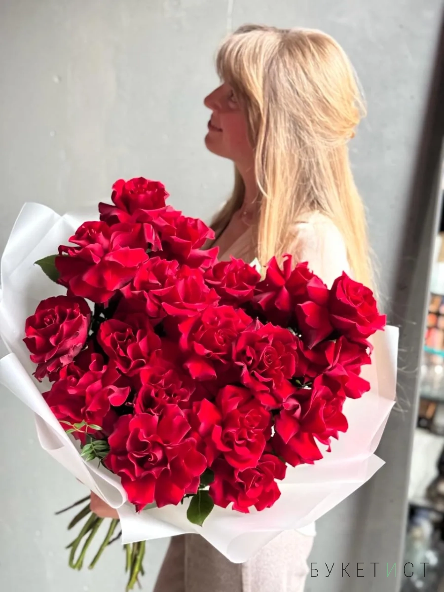 Букет из французских роз "Lady in red"