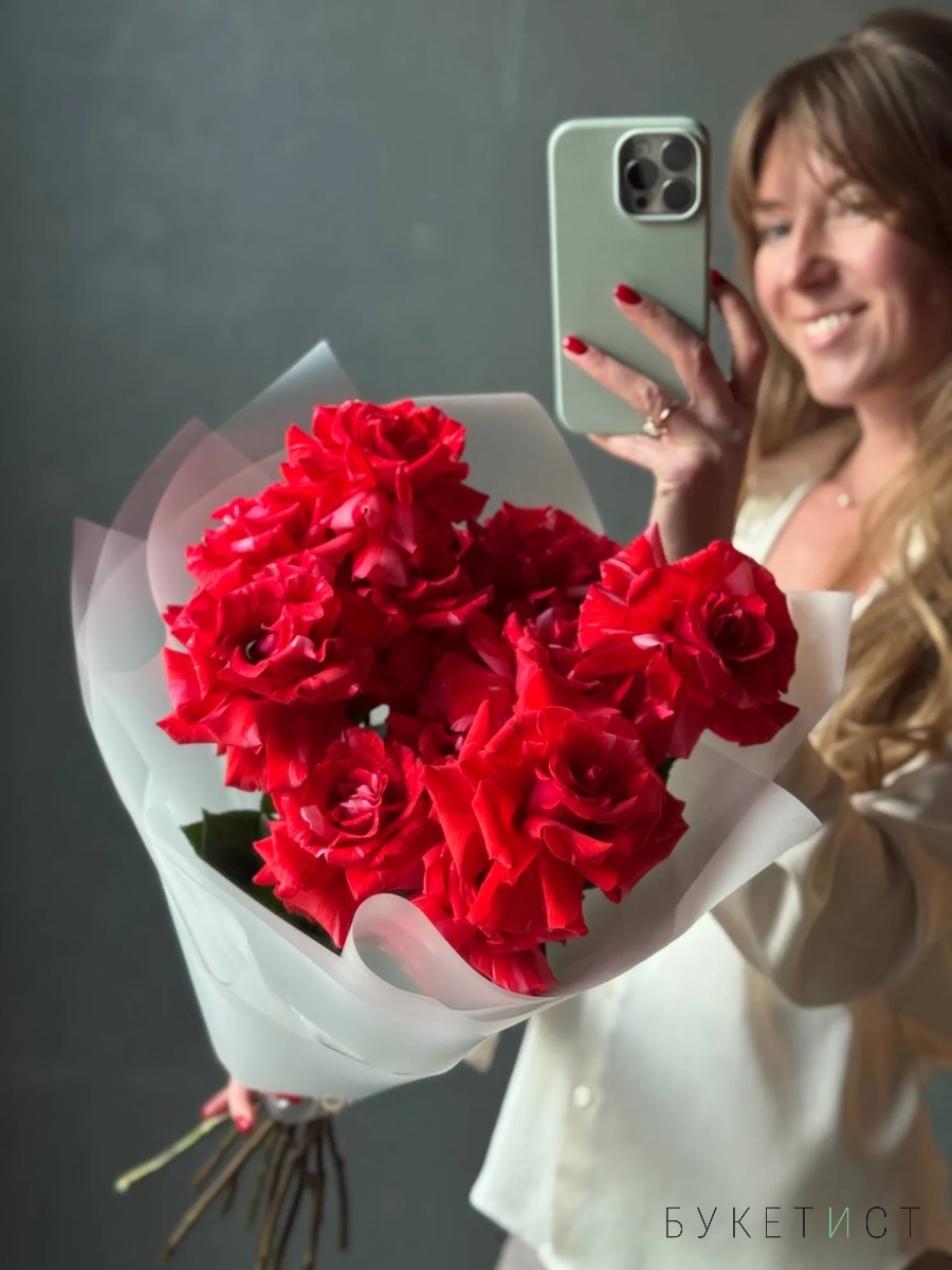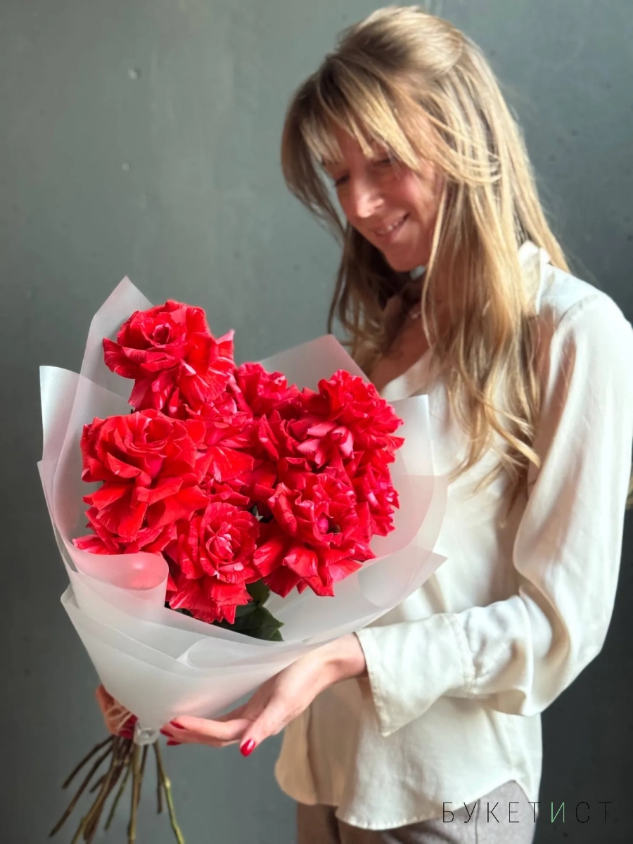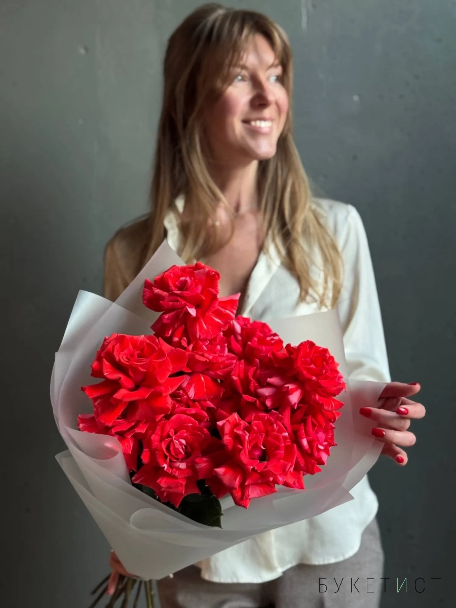 Букет мраморных красных роз сорта Вайлд Кэт