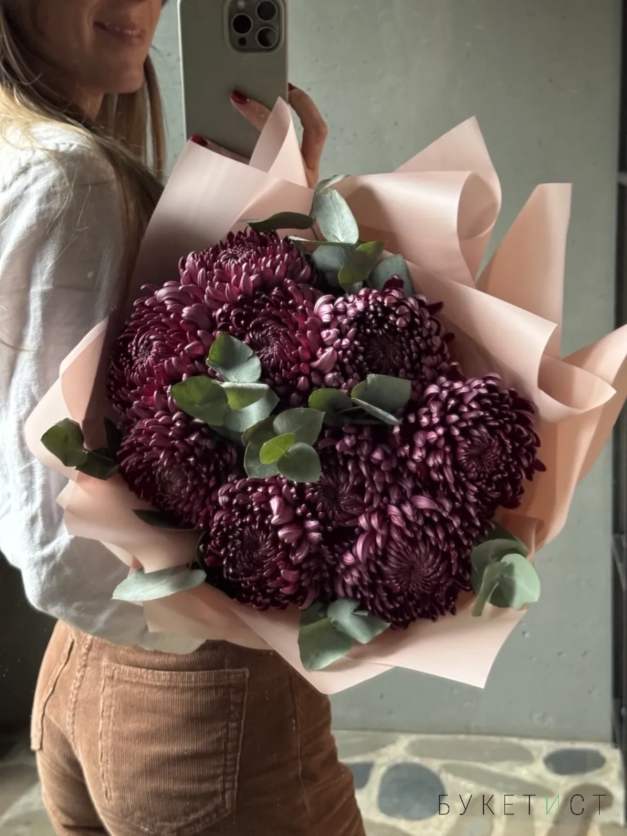 Монобукет из сезонных осенних хризантем сорта Vienna Red. Прелесть, не правда ли?