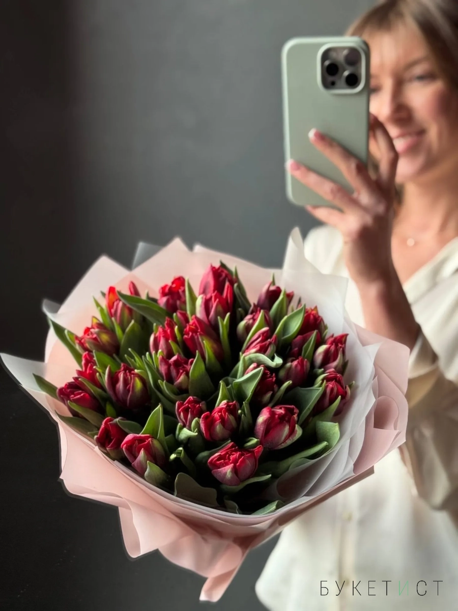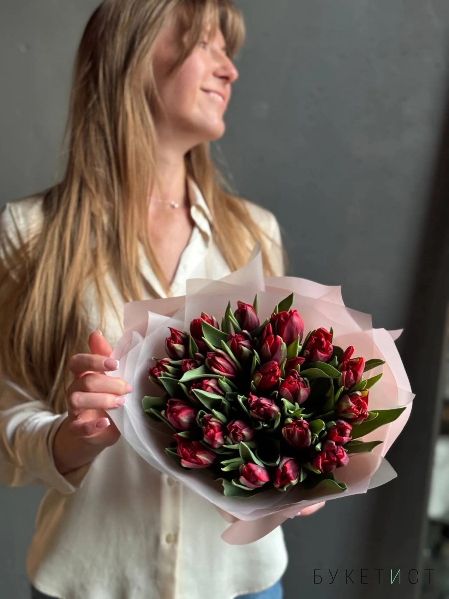 Монобукет из тюльпанов премиум-сорта Рэд Принцесс.