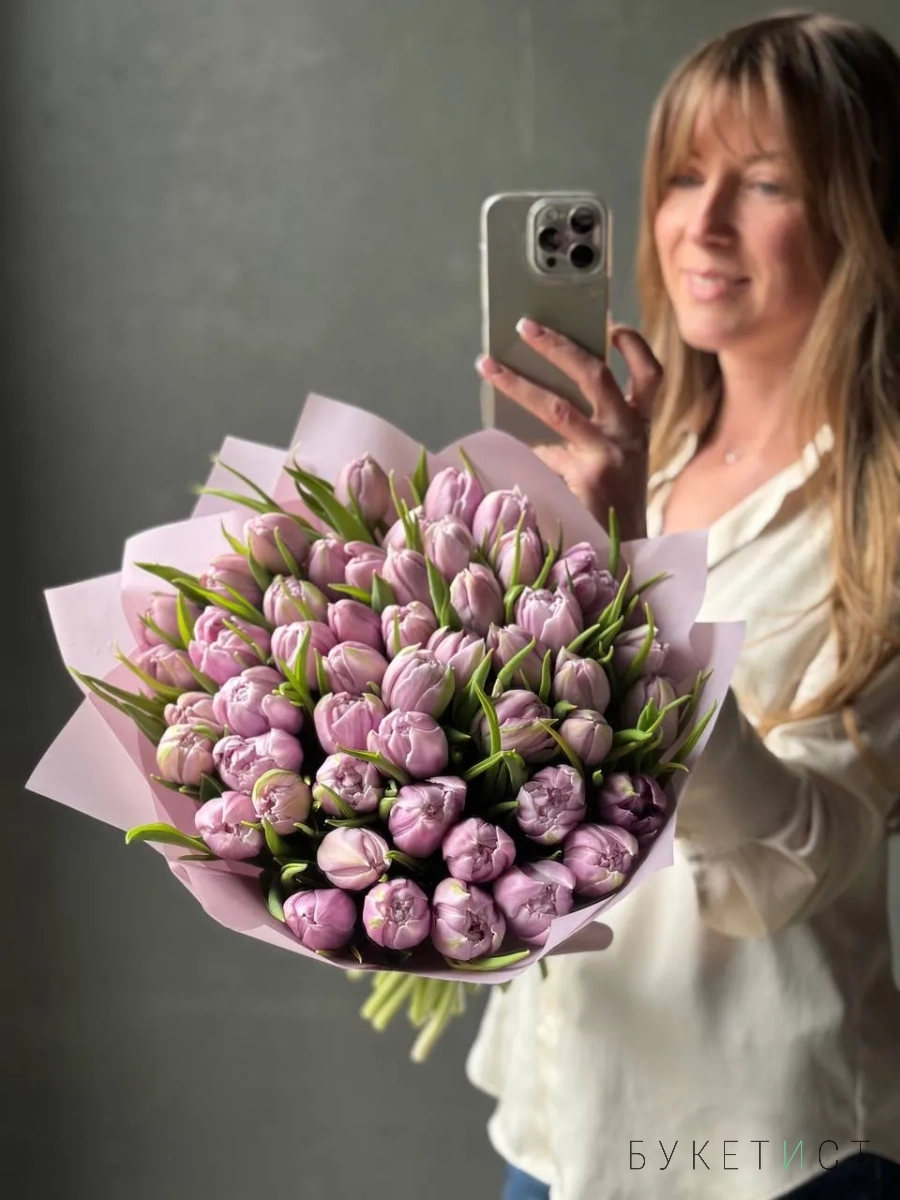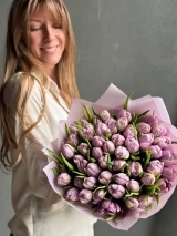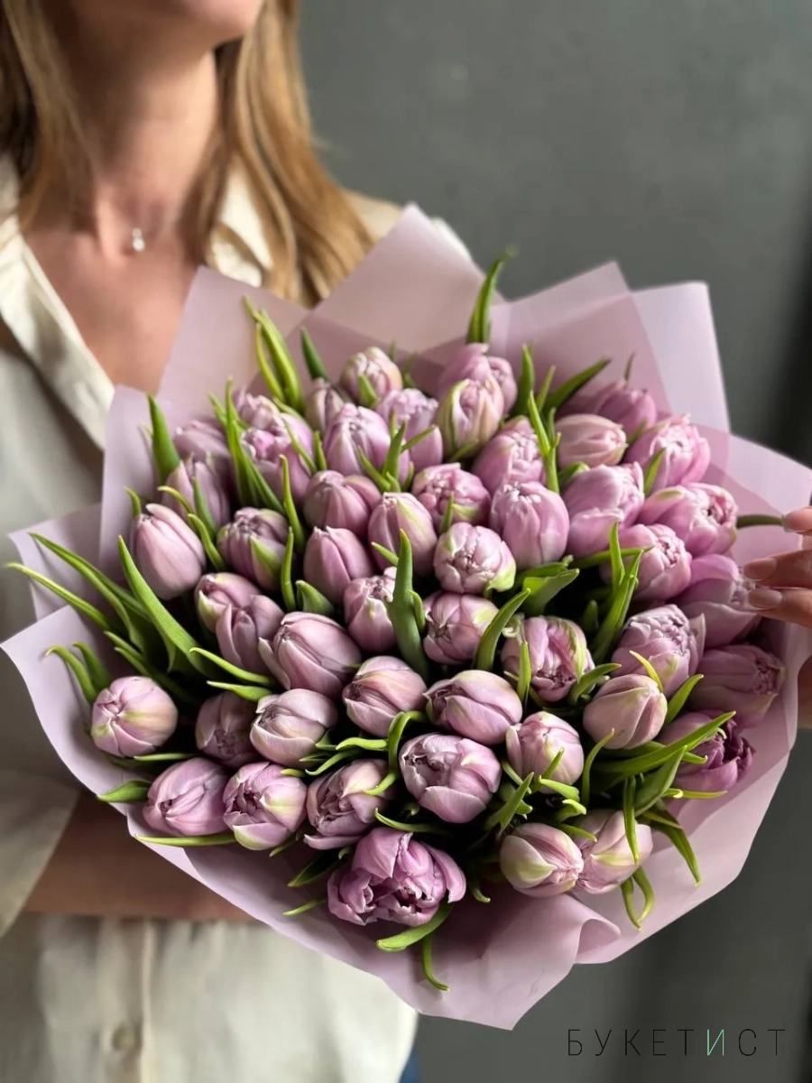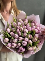 Монобукет из лавандовых пионовидных тюльпанов сорта Катенька.