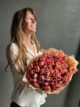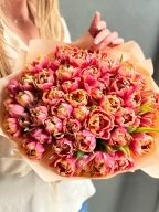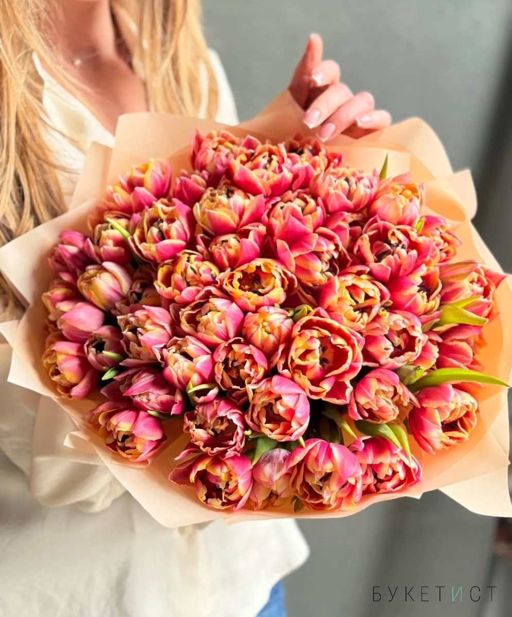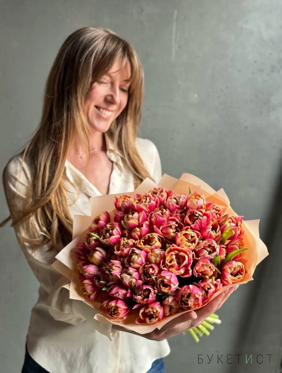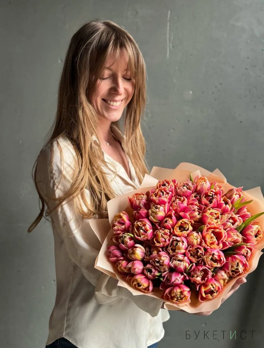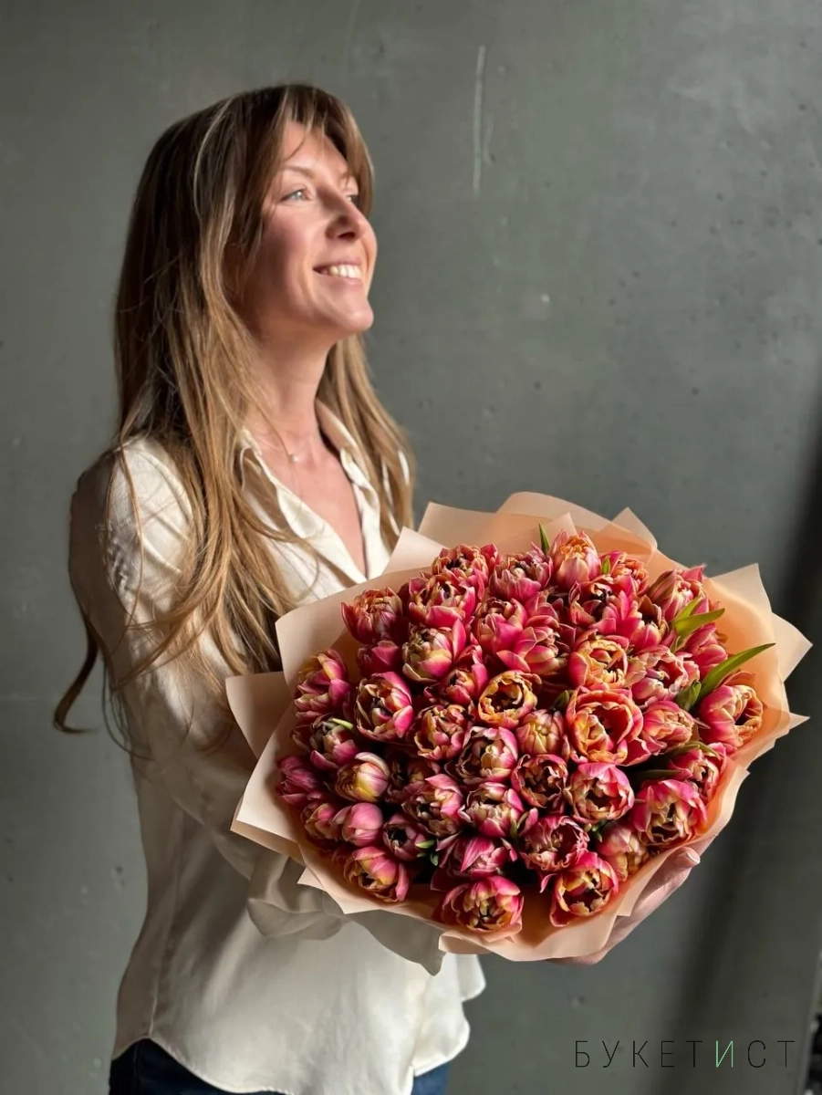 Монобукет из насыщенно-розовых пионовидных тюльпанов премиум-сорта Коламбус.