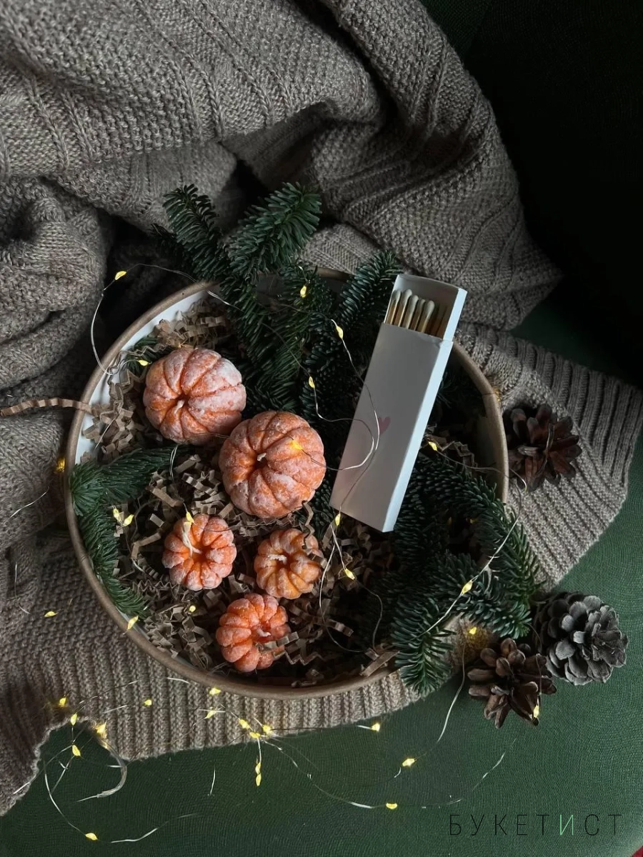 Новогодний подарочный набор микс больших и маленьких свечей "Мандаринка"