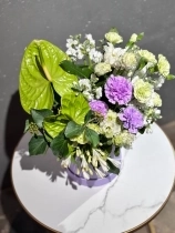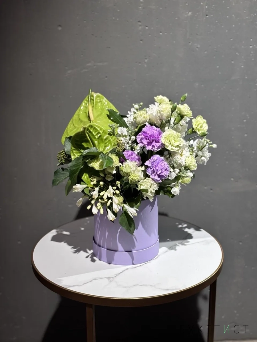 В составе: гвоздики, маттиола, антуриум, агапантус.
