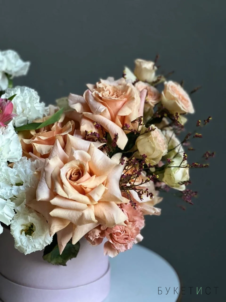 Авторская композиция в шляпной коробке "Персиковый нектар"