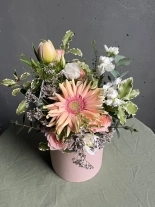 Авторская композиция "Персиковый крем" в шляпной коробке