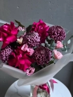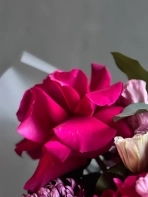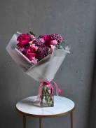 Авторский букет с малиновой розой сорта Пинк Флойд