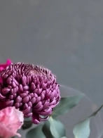 В составе: хризантема сорта бигуди, вывернутая роса сорта Пинк Флойд, эустома.