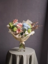 Самый фотогеничный букет сезона. Сочетание контрастных цветов и актуальной упаковки делает его главным героем соцсетей. Стильный заряд радости, который гарантированно соберет все лайки и комплименты.