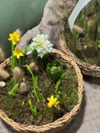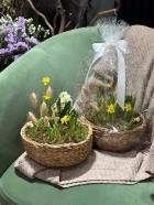 Гиацинты и нарциссы в плетеной корзине