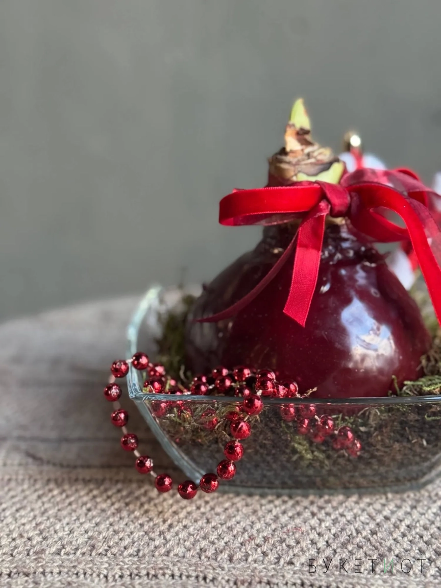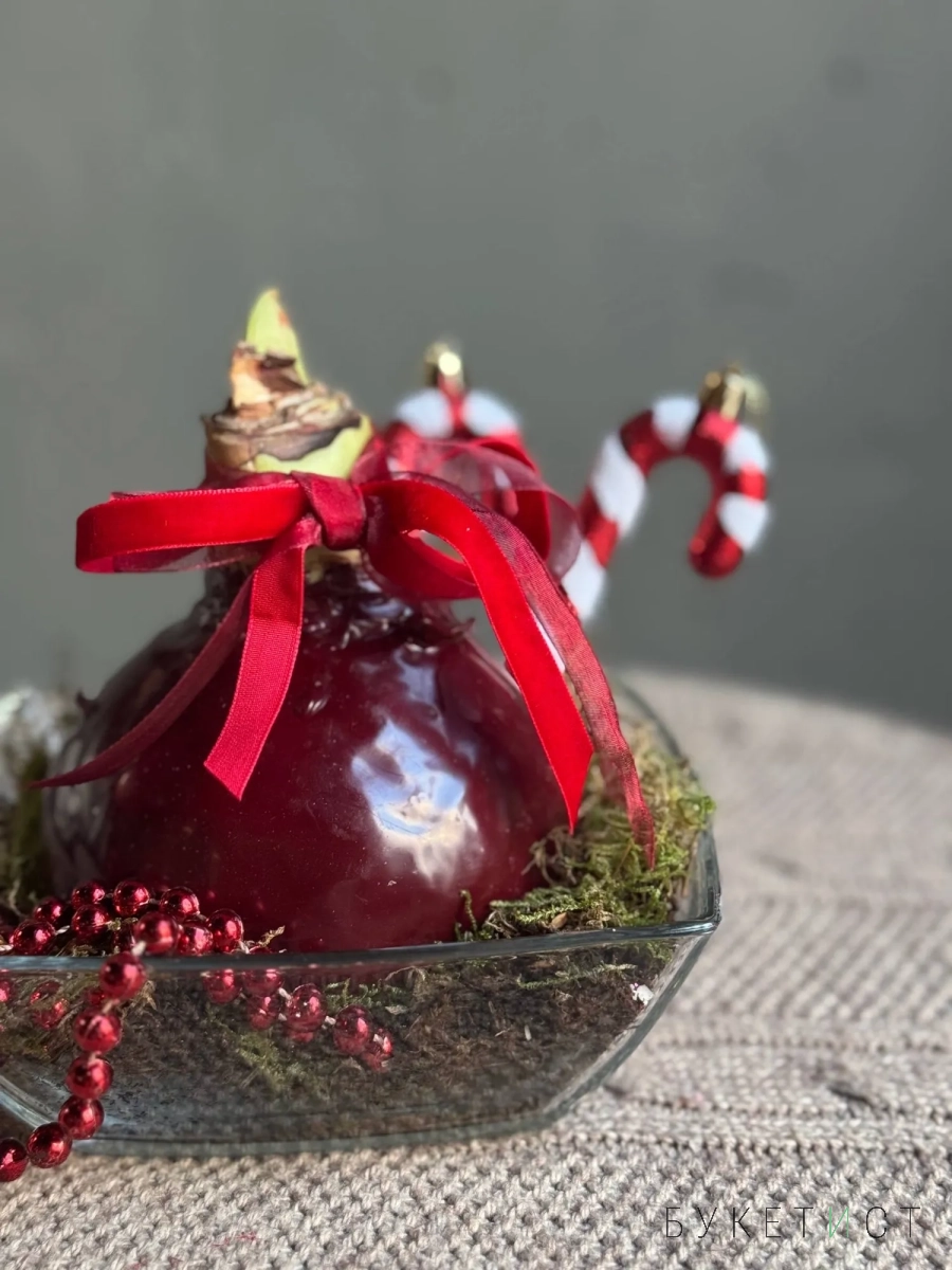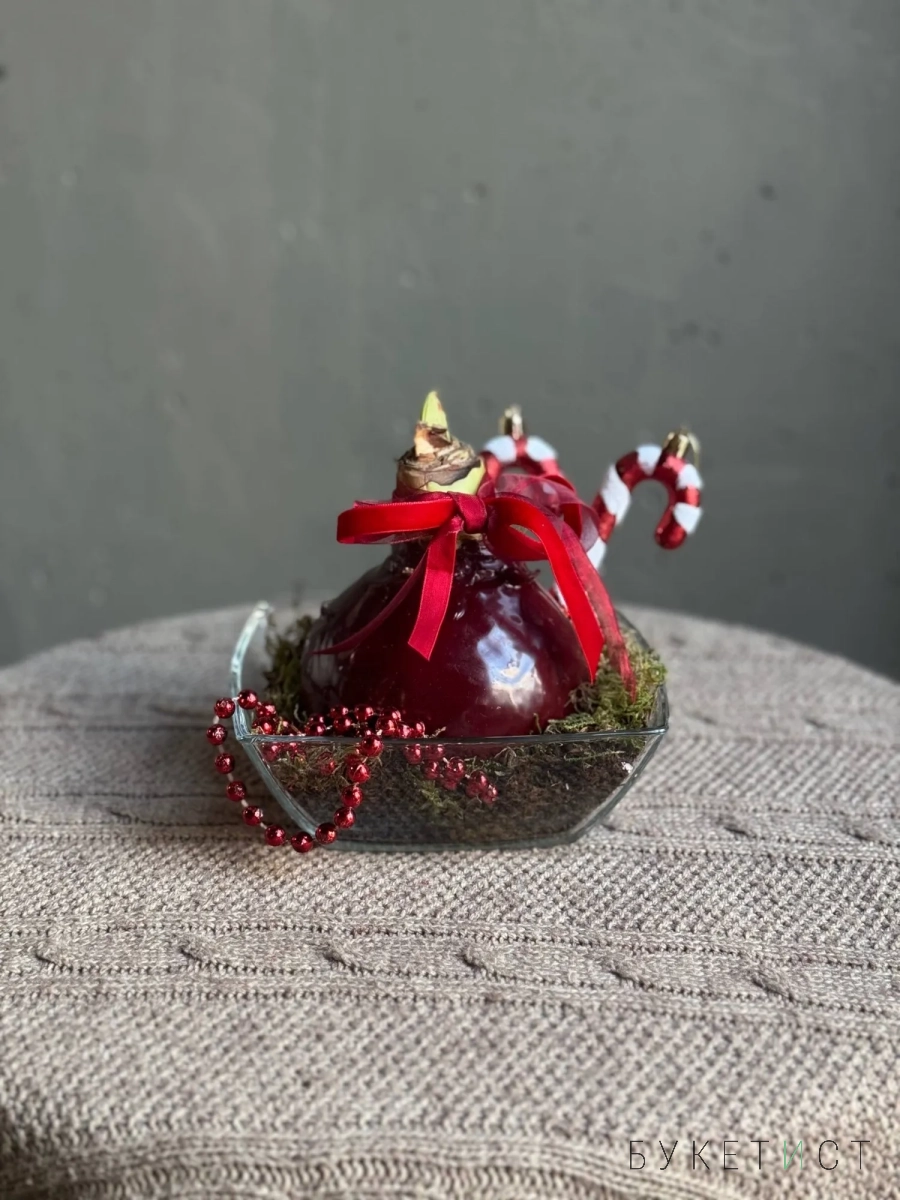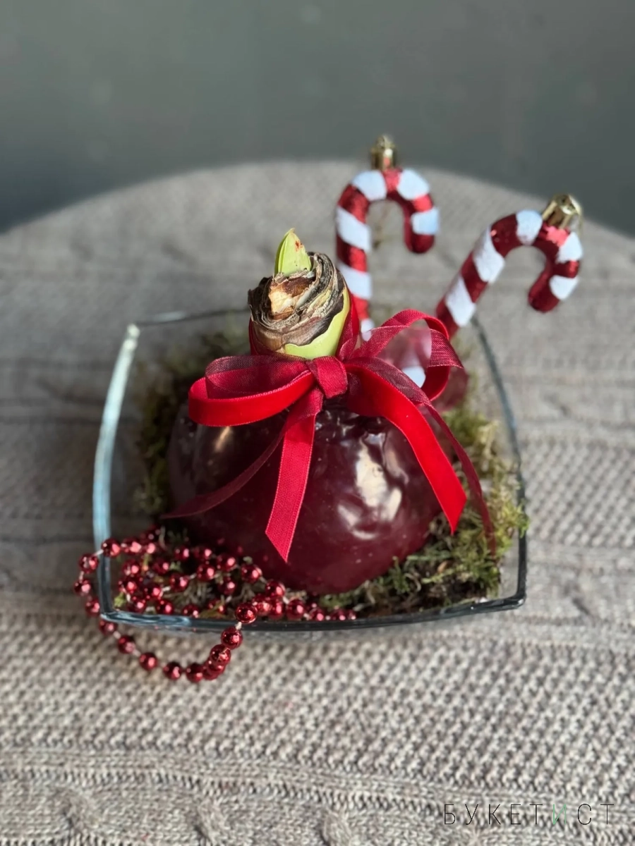 Композиция с луковицей амариллиса "Карамельный леденец"