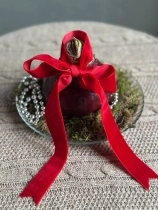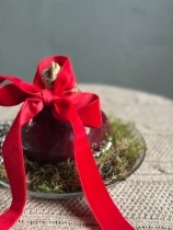 Живые ветви ароматной ели устанавливаются в специальный материал, пропитанный водой - это позволяет изделию держать форму и сохранять свежесть как можно дольше. Украшения аккуратно крепим на специальный клей (не обходится и без особой флористической магии, конечно).