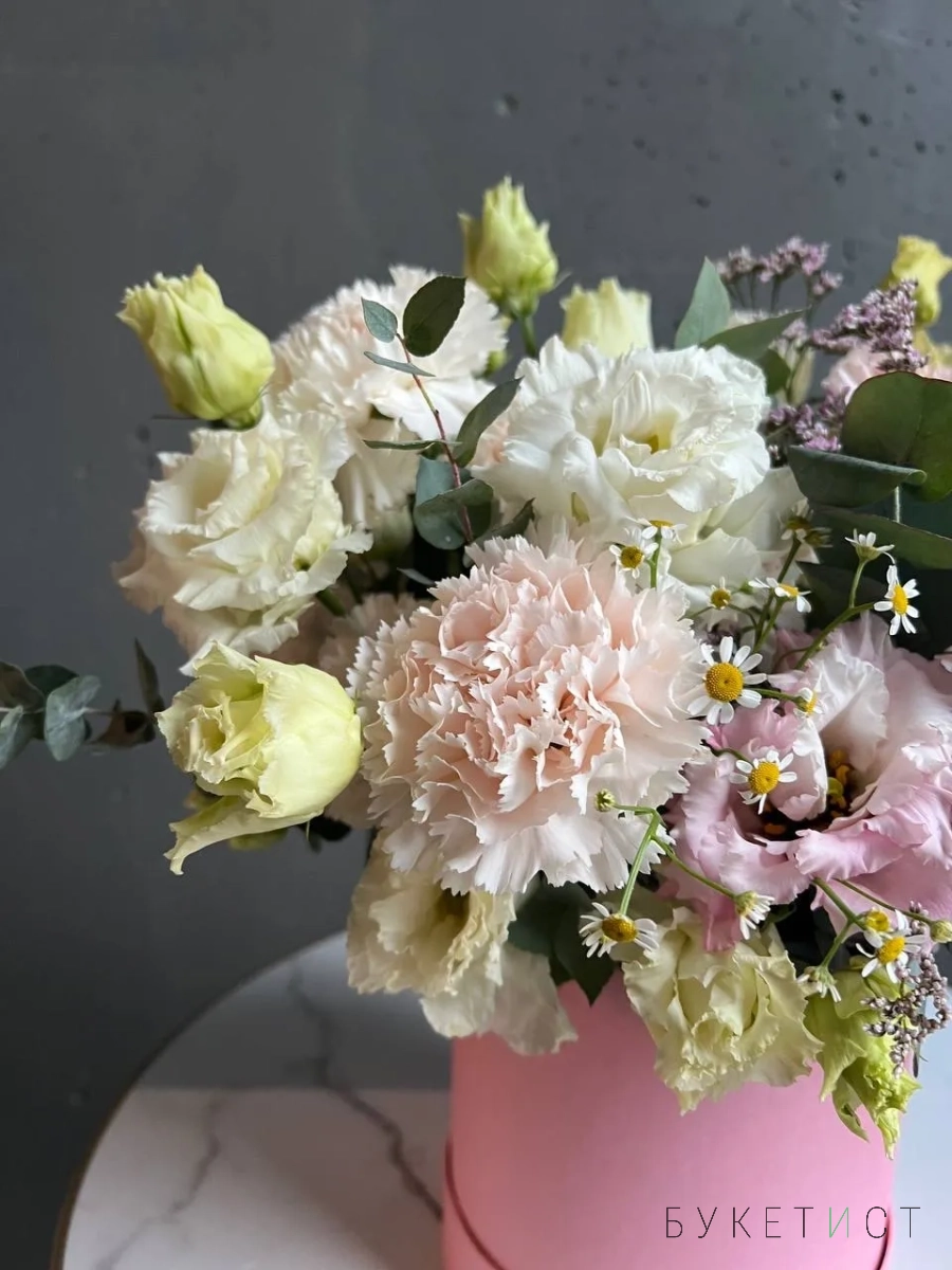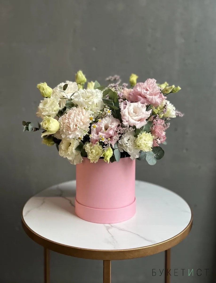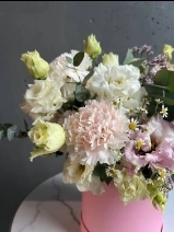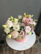 Композиция в шляпной коробке в нежной гамме