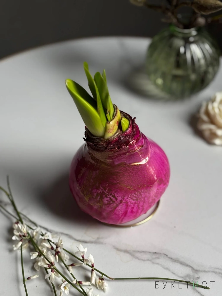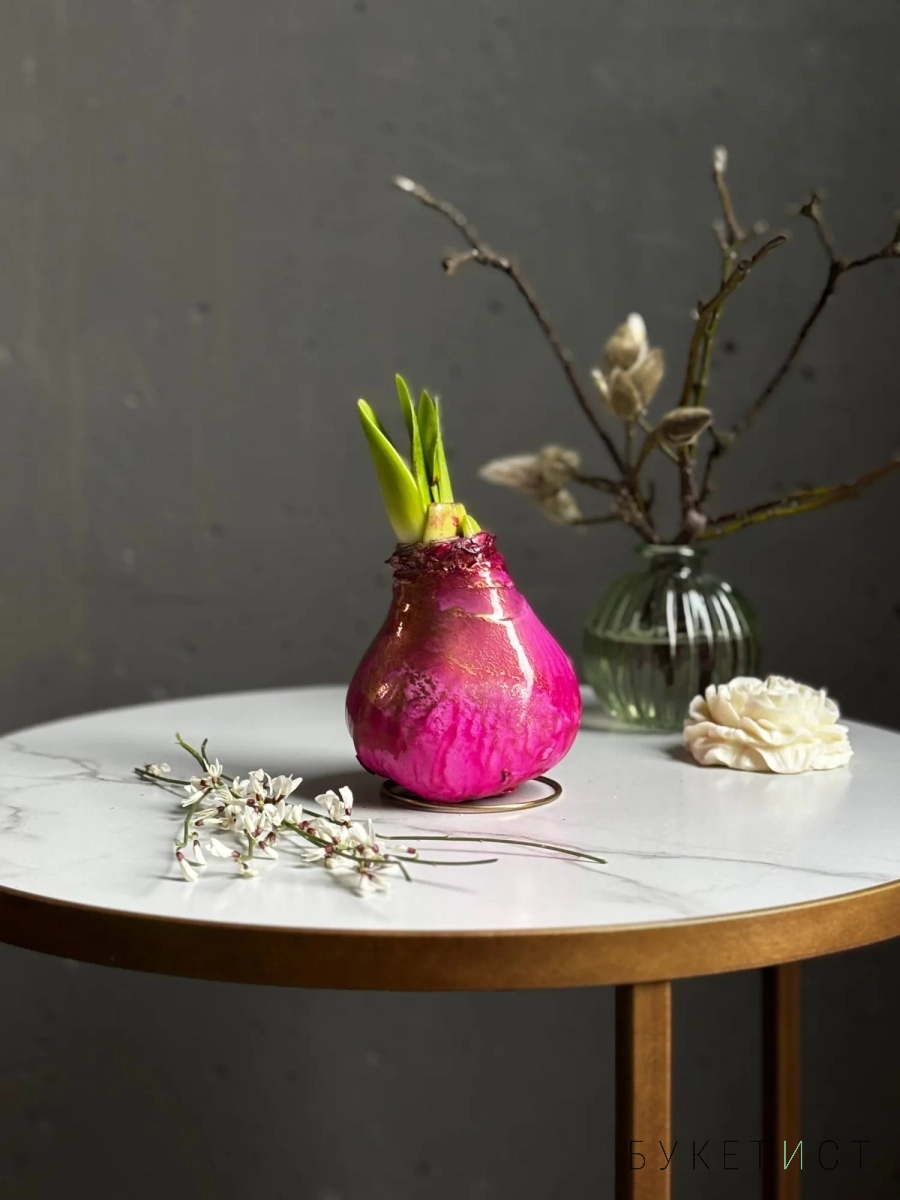 Гиацинты распускаются постепенно, позволяя наблюдать путь от бутона до пышного цветка, а насыщенный, но благородный запах наполняет пространство ощущением весны и уюта. Приятный бонус - после цветения луковицы можно сохранить и высадить в грунт или горшок, чтобы они радовали снова.