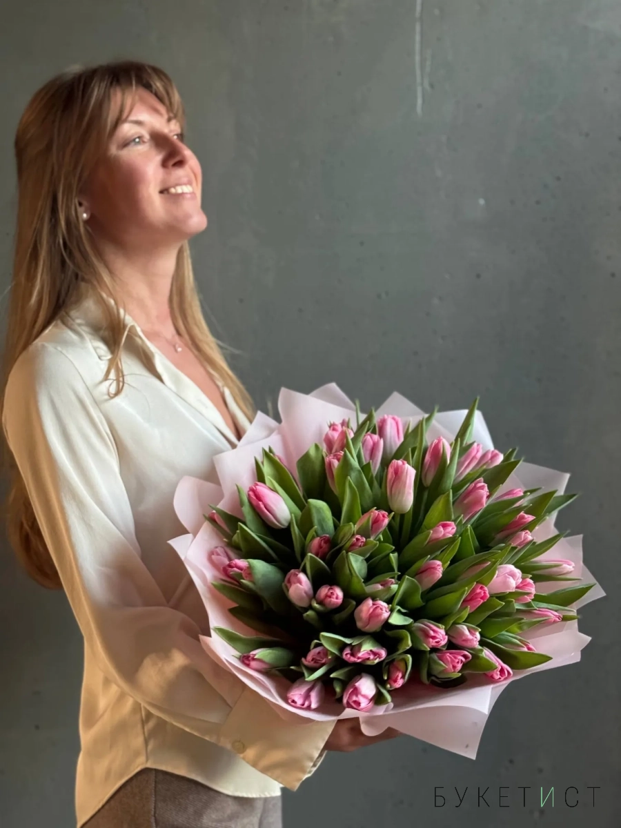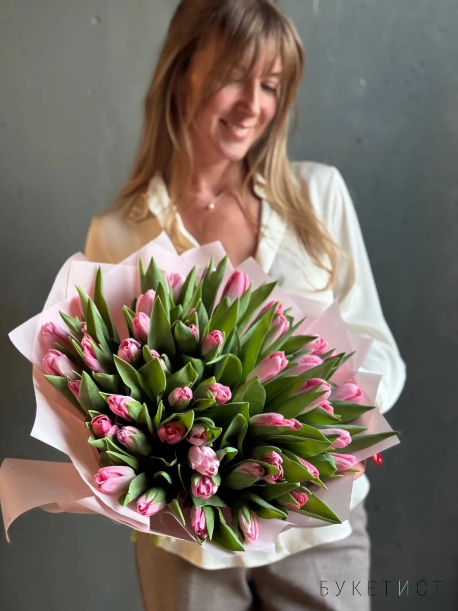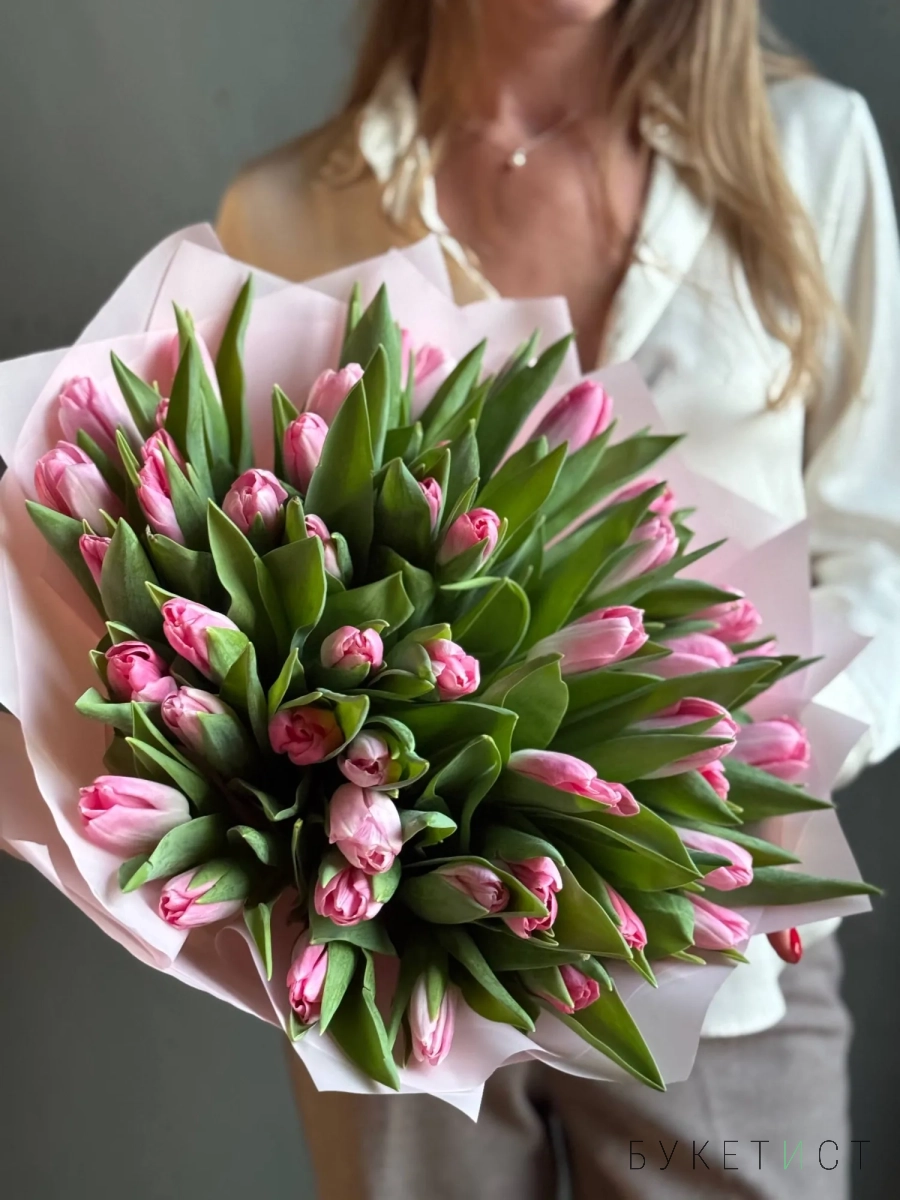 Монобукет тюльпанов в нежном оттенке из 49 стеблей.