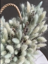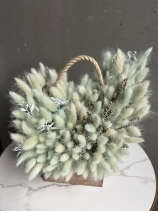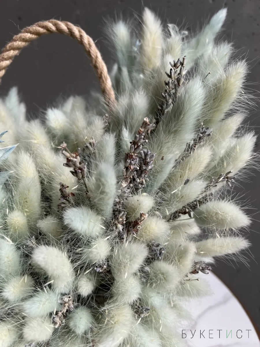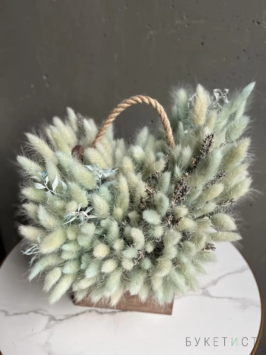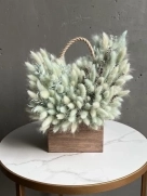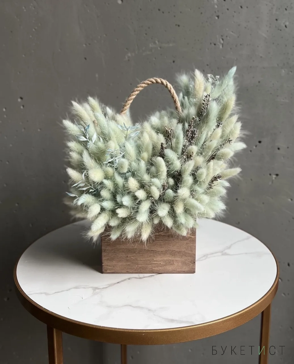 Натуральный букет сухоцветов с голубым лагурусом деревянном ящике