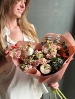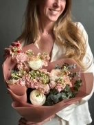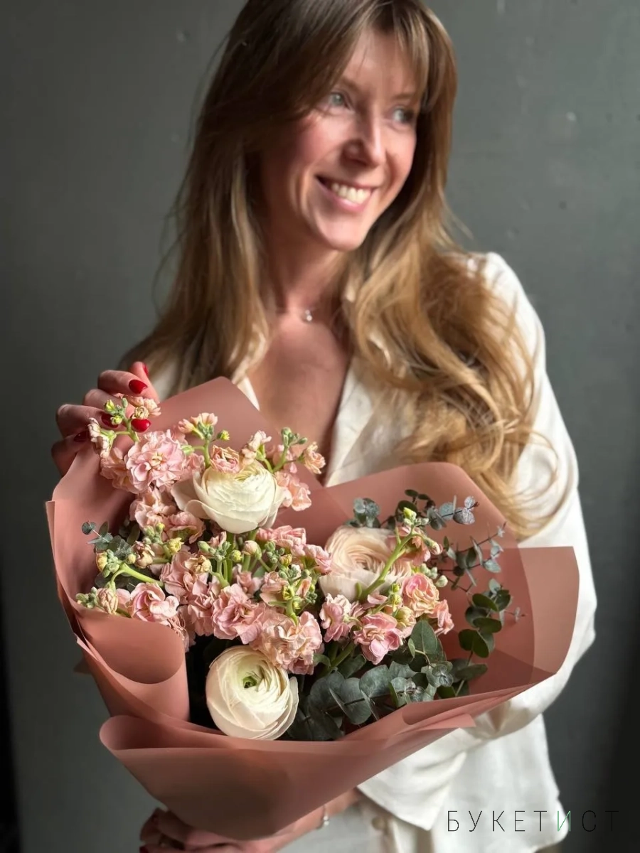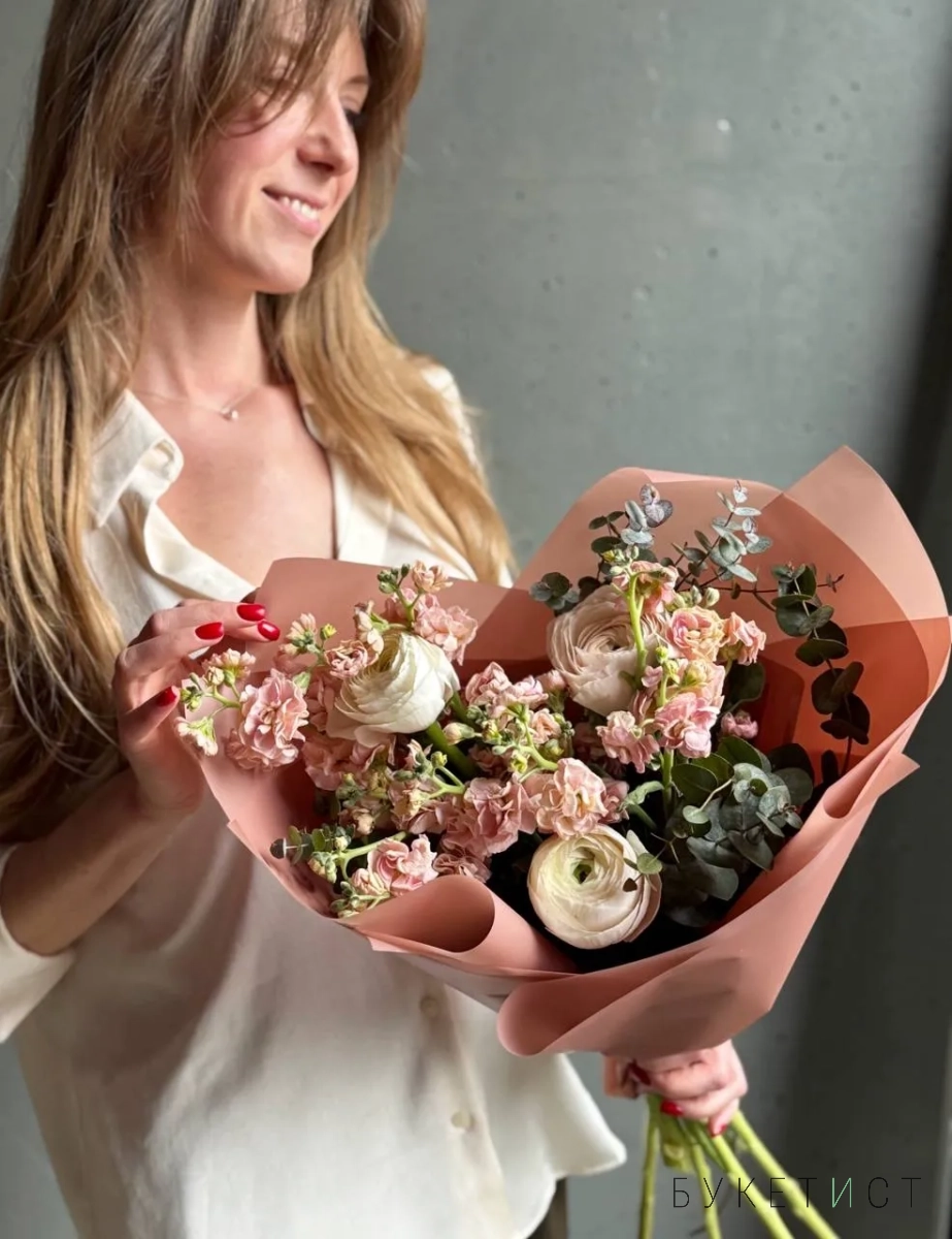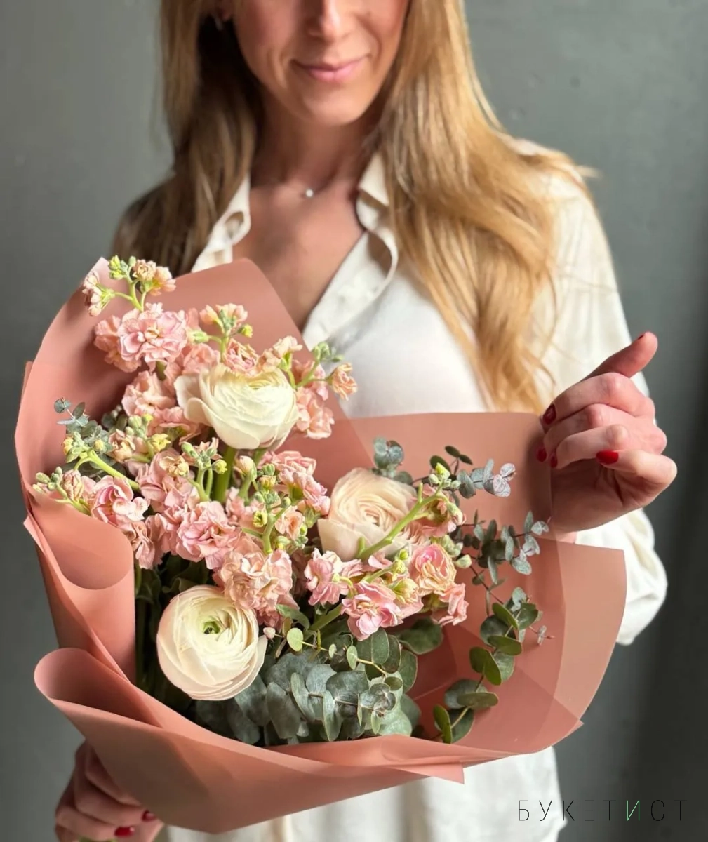 Персиковая маттиола и сезонные ранункулюсы