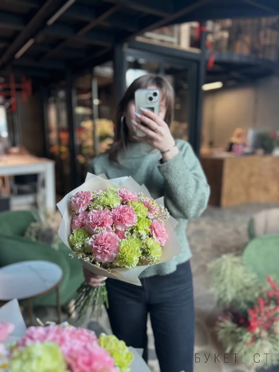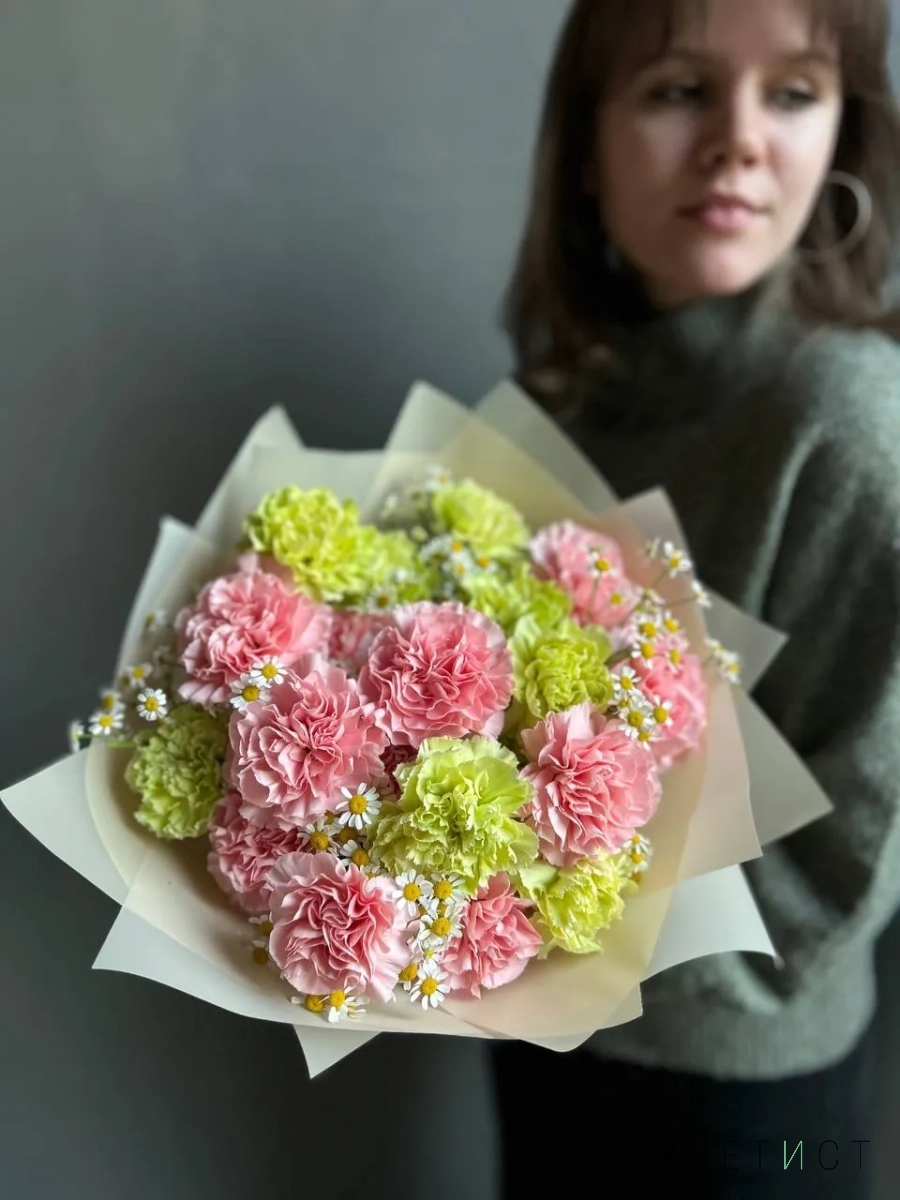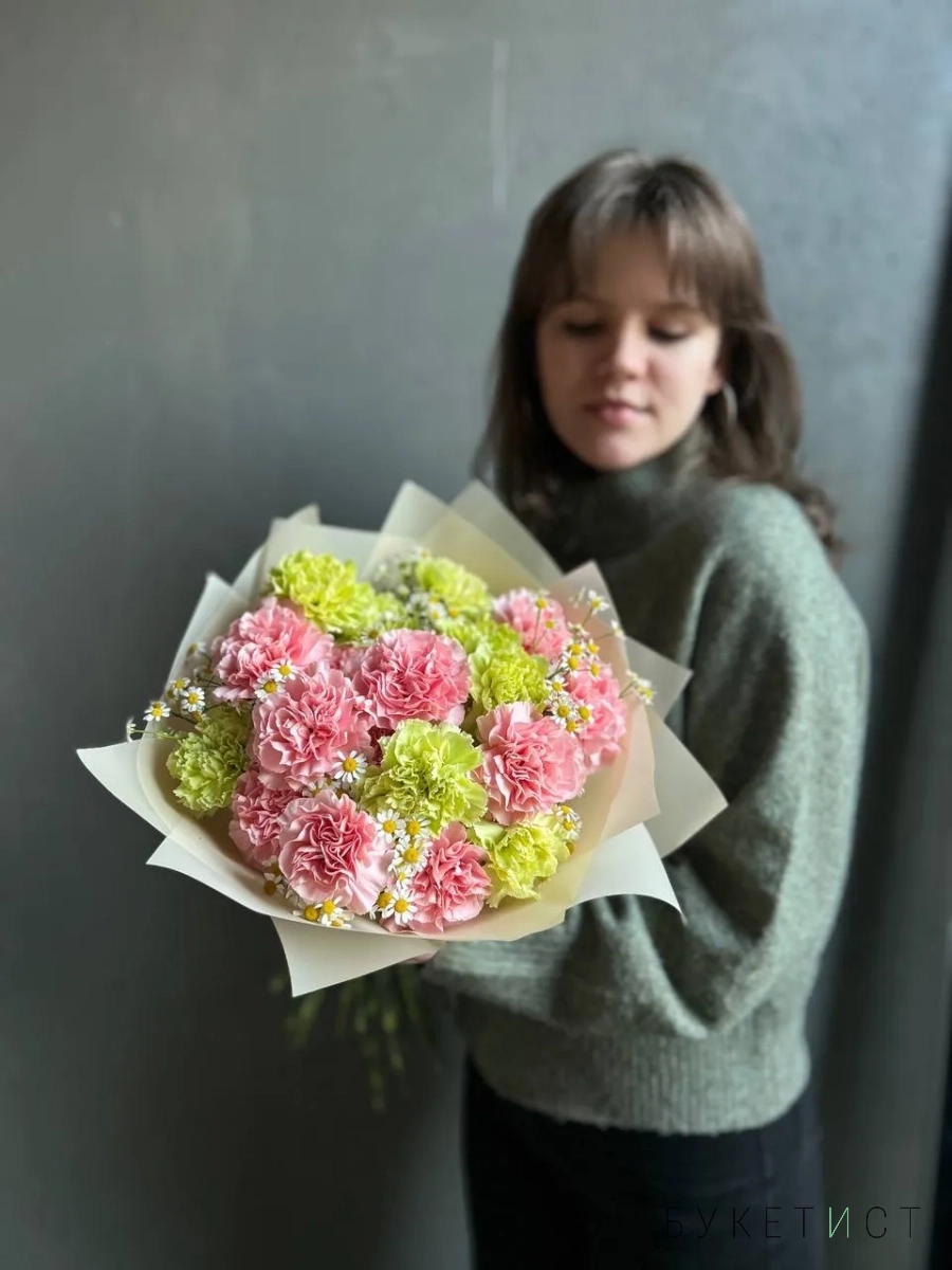 Букет из гвоздик и ромашек