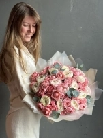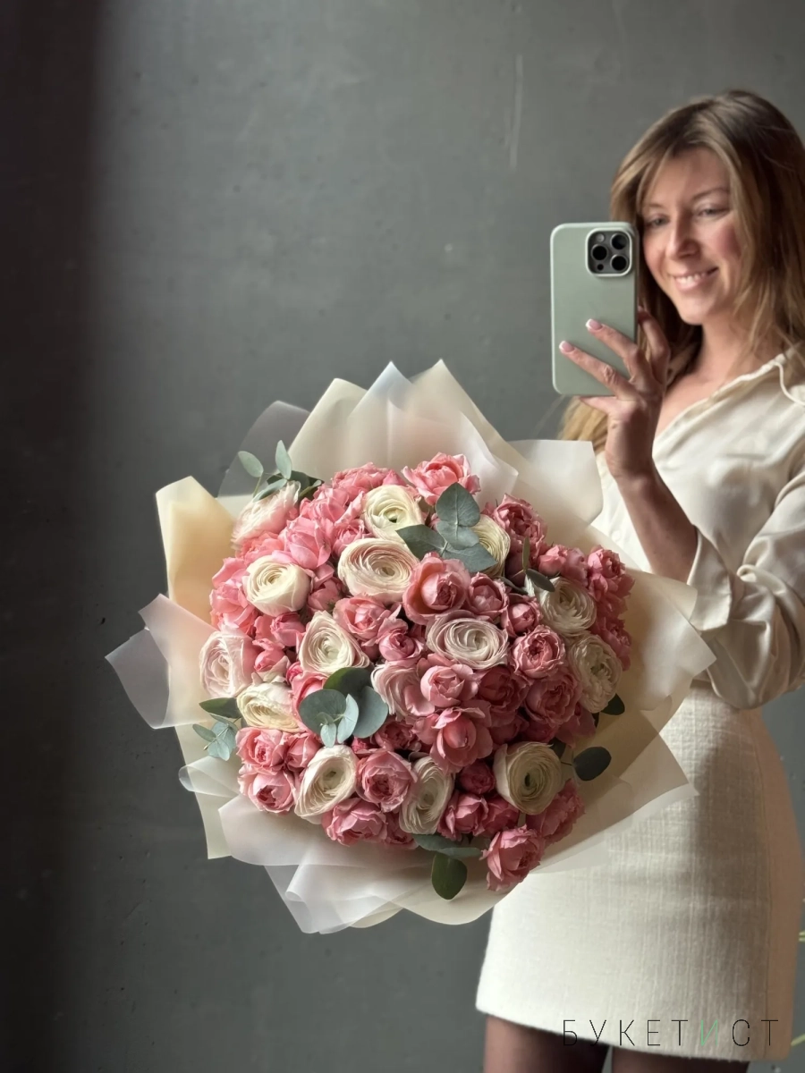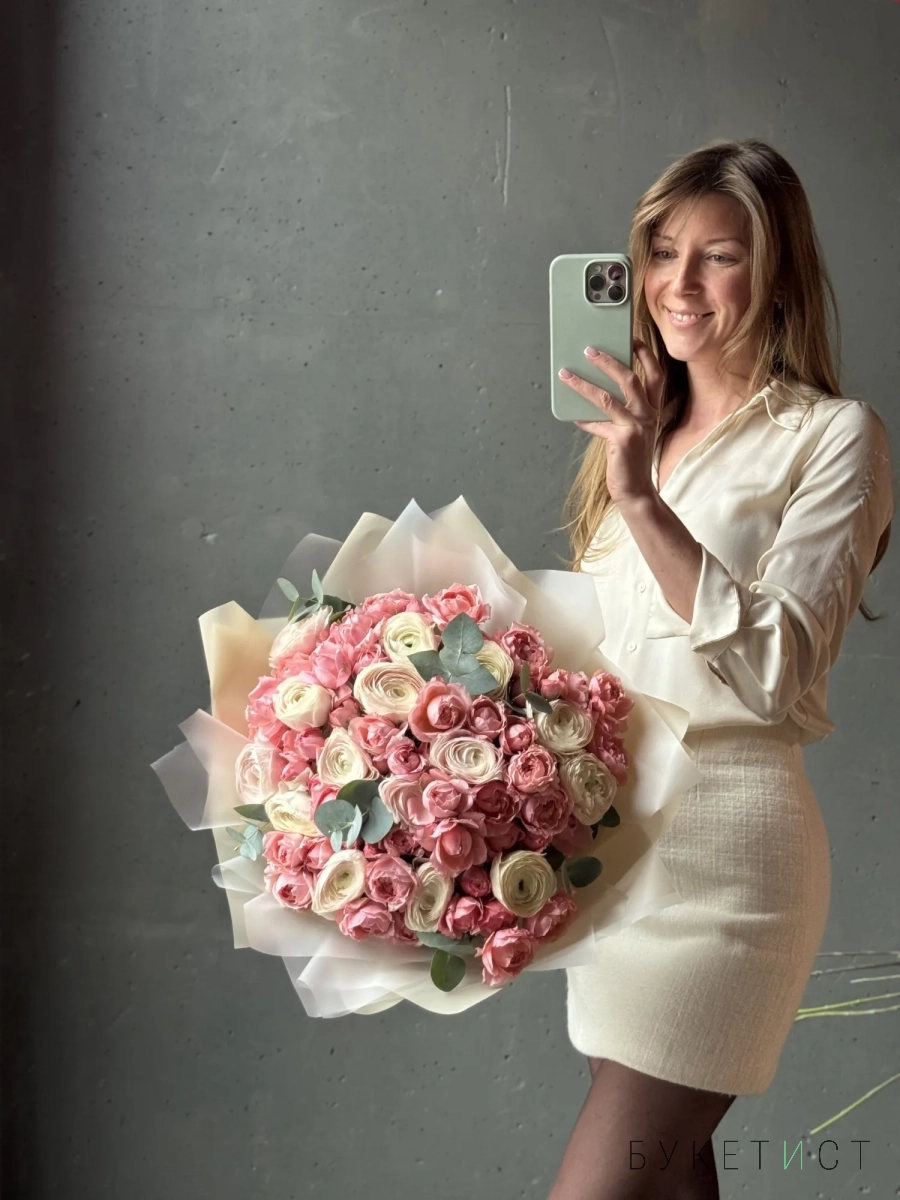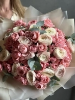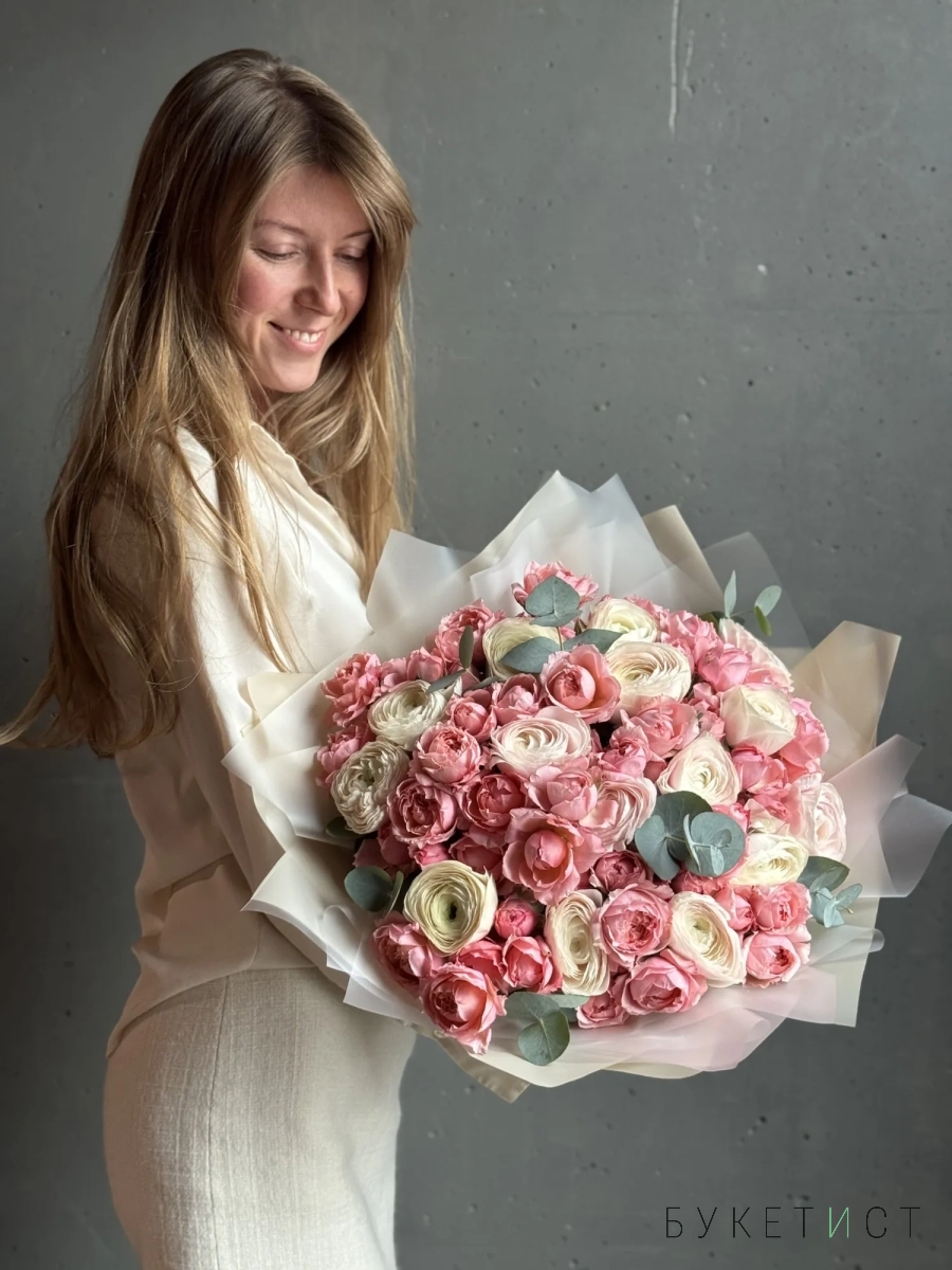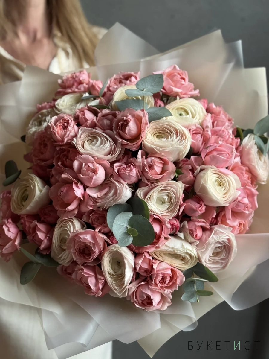 Большой букет из ранункулюсов и пионовидных роз