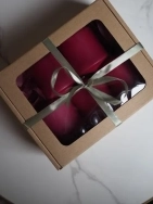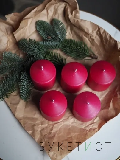 В наборе 3 свечи. Высота 6 см, диаметр 5 см.