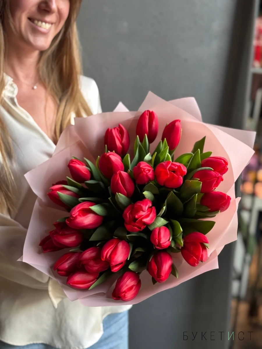 Букет красных тюльпанов от 5 шт