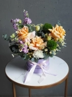 Композиция в шляпной коробке в весенних оттенках.
