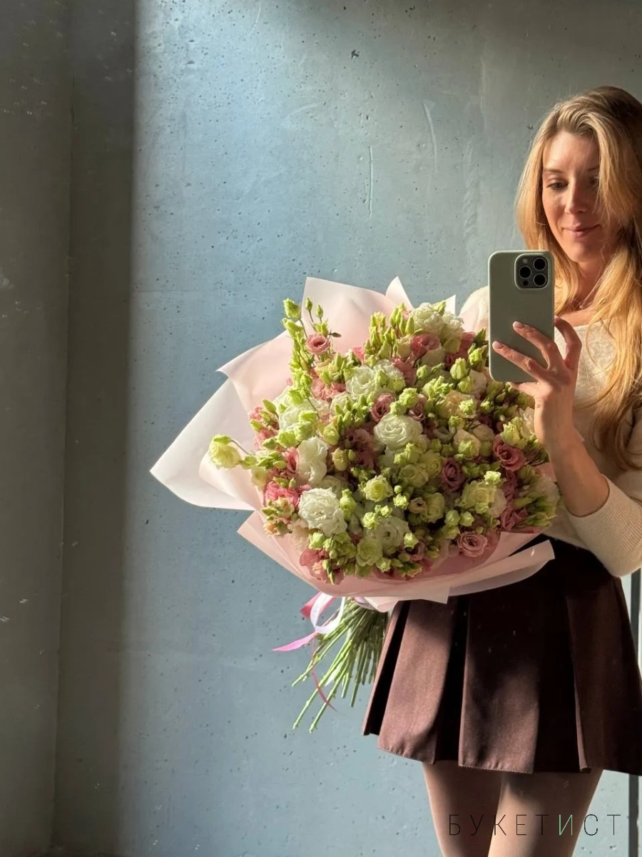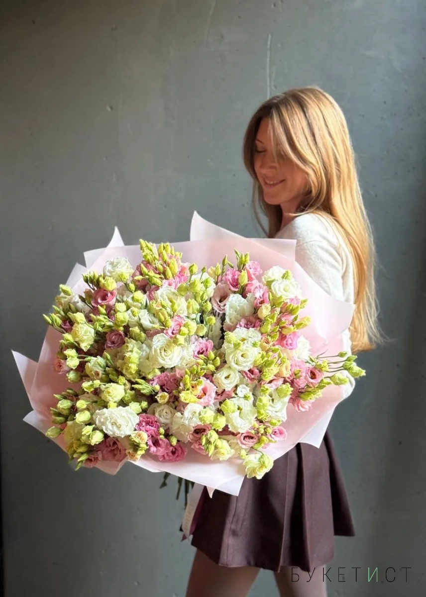 Большой букет махровых эустом пастельных оттенков 39 шт