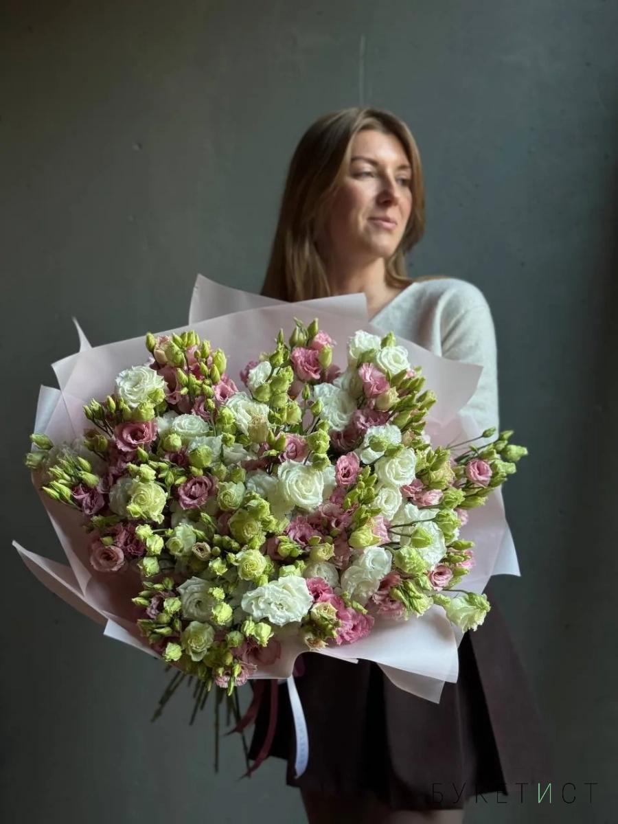Монобукет из 39 махровых эустом сорта Алиса Пинк и Алиса Вайт.