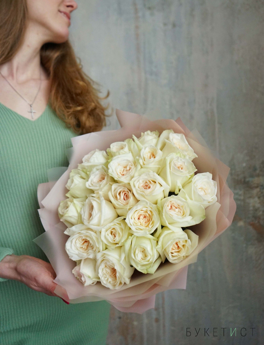Букет ароматных пионовидных роз премиум-сорта Вайт Охара