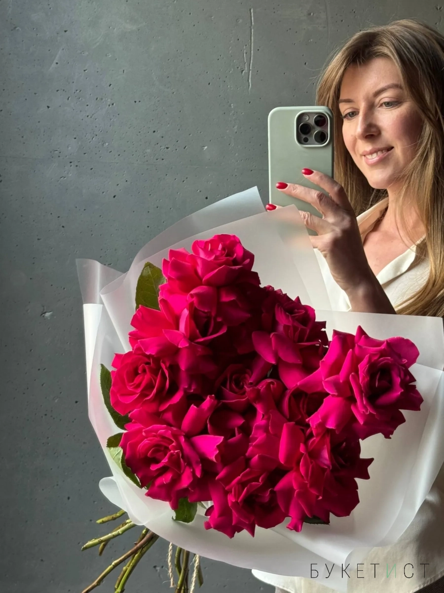 Букет малиновых роз сорта Pink Floyd