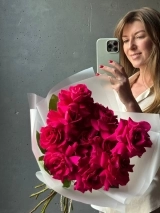 На фото представлен монобукет из 9 роз премиум-сорта Pink Floyd (Эквадор). Букет собран в разновысотной технике, а каждый лепесток розы вывернут вручную - так создается объем и особый эффект "кружева".