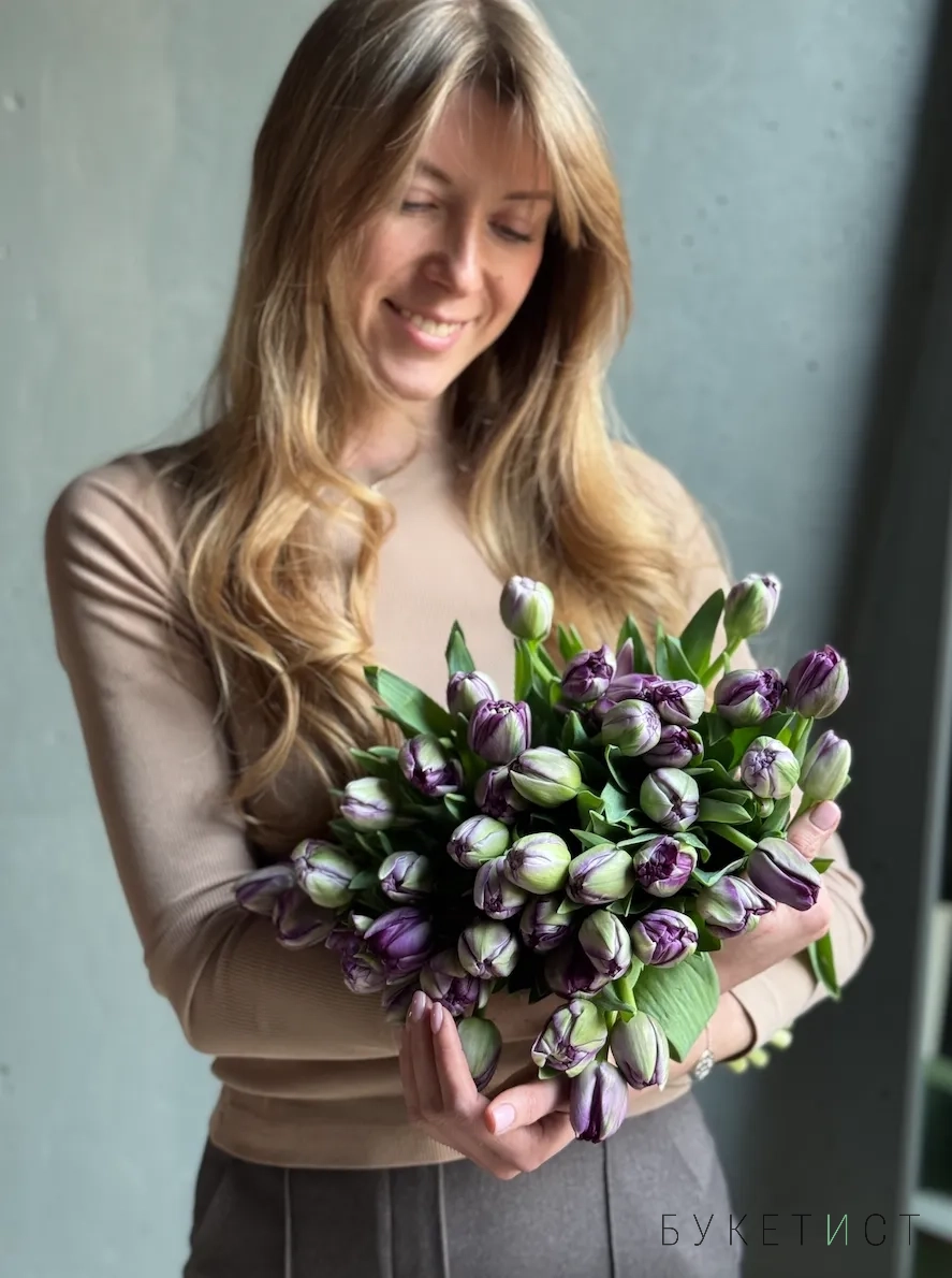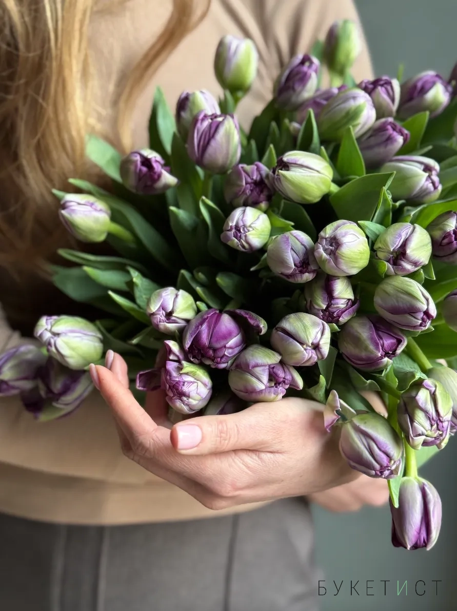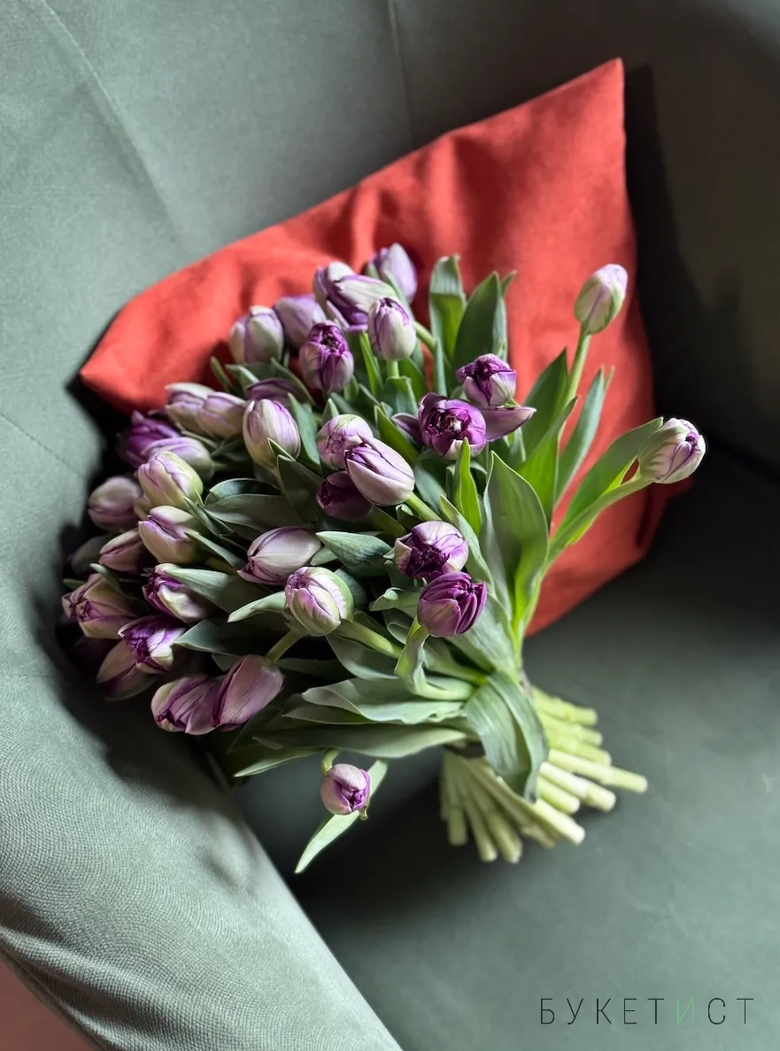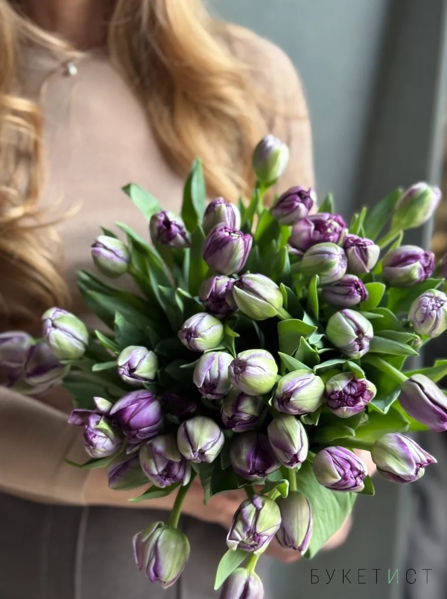 Букет сиреневых пионовидных тюльпанов Сайгон