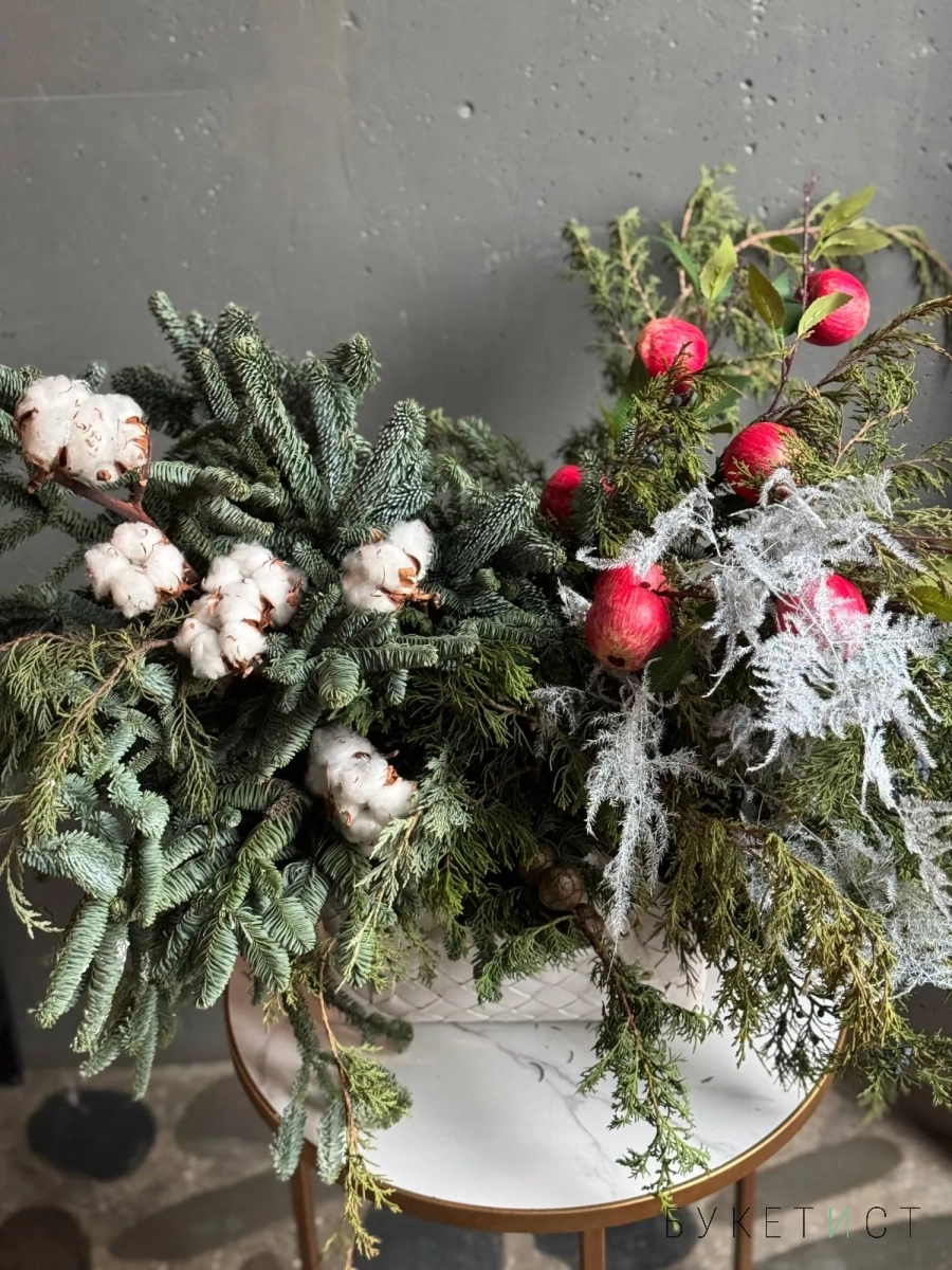 Мы в Букетисте очень любим создавать уютный новогодний декор. А ещё мы работаем с датской елью самого высокого качества — наши изделия не осыпаются через неделю и выглядят так, как будто вы только-только сорвали свежую еловую веточку в лесу.