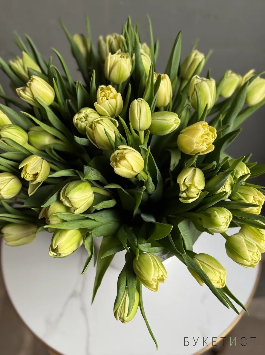 Монобукет лимонных пионовидных тюльпанов сорта "Авангард". На фото представлен букет из 39 стеблей. Прелесть, не правда ли?