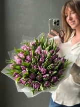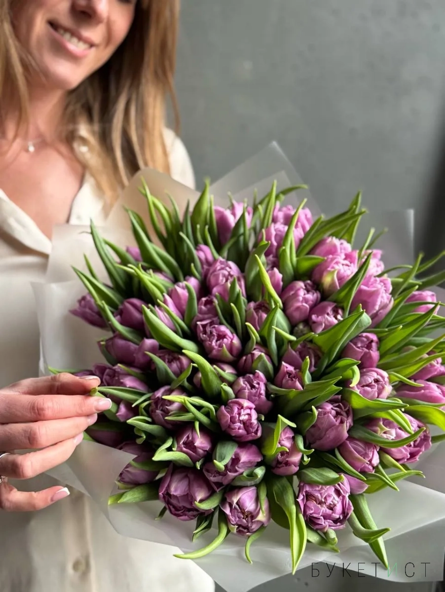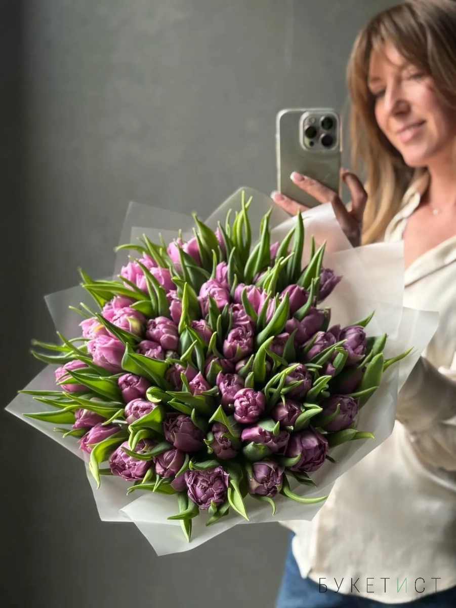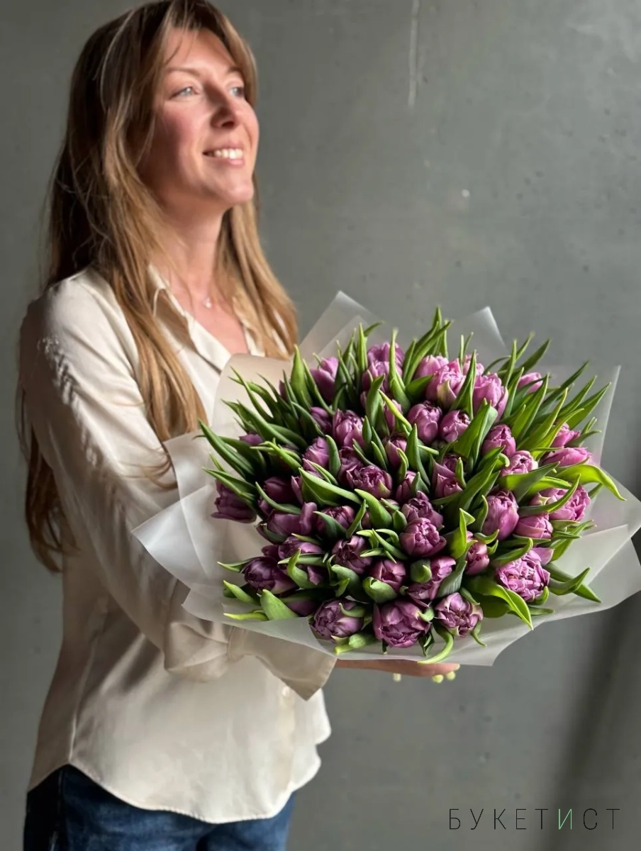 Букет сиреневых пионовидных тюльпанов Дабл Прайс