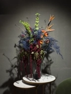 Экзотичный интерьерный букет в яркой гамме.