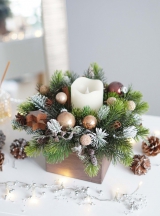 Бронзовая композиция из искусственной ели в ящике LED-свеча