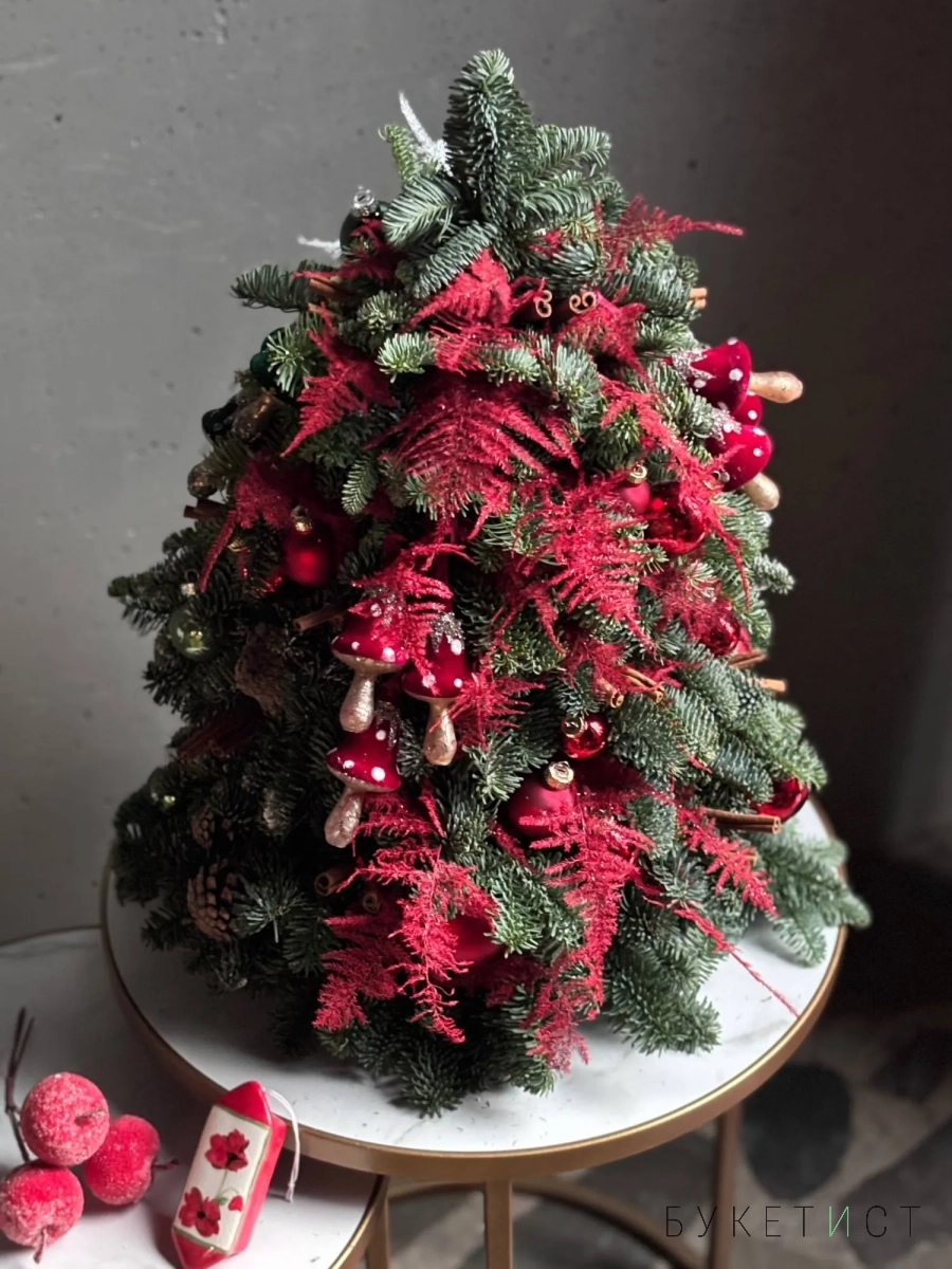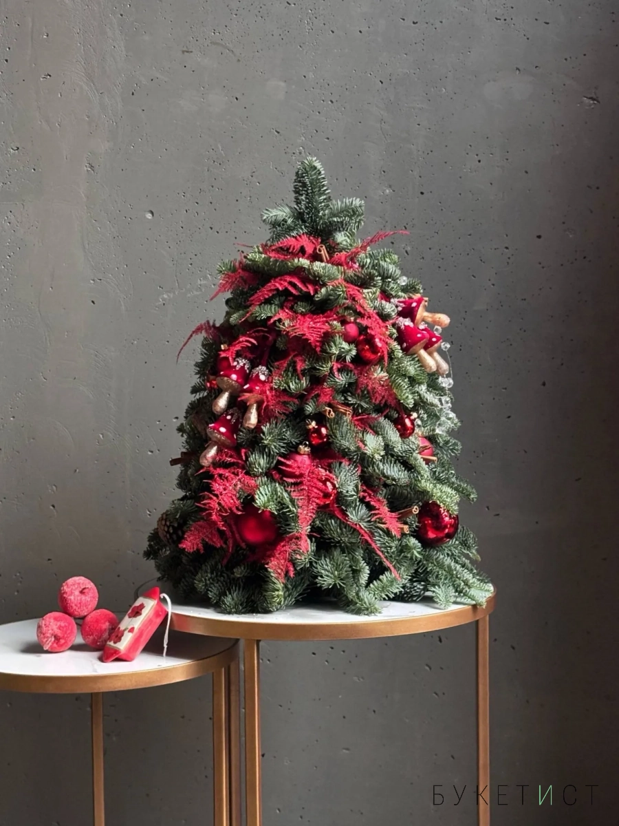 Новогодняя елочка из натуральной хвои "Сказочный мухоморчик"