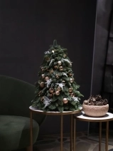 Каждая ёлочка создаётся волшебными руками наших фей-флористов: живые ветви ароматной ели устанавливаются в специальный материал, пропитанный водой - это позволяет изделию держать форму и сохранять свежесть как можно дольше. Украшения аккуратно крепим на специальный клей - уровень эстетического удовольствия просто зашкаливает ❤️