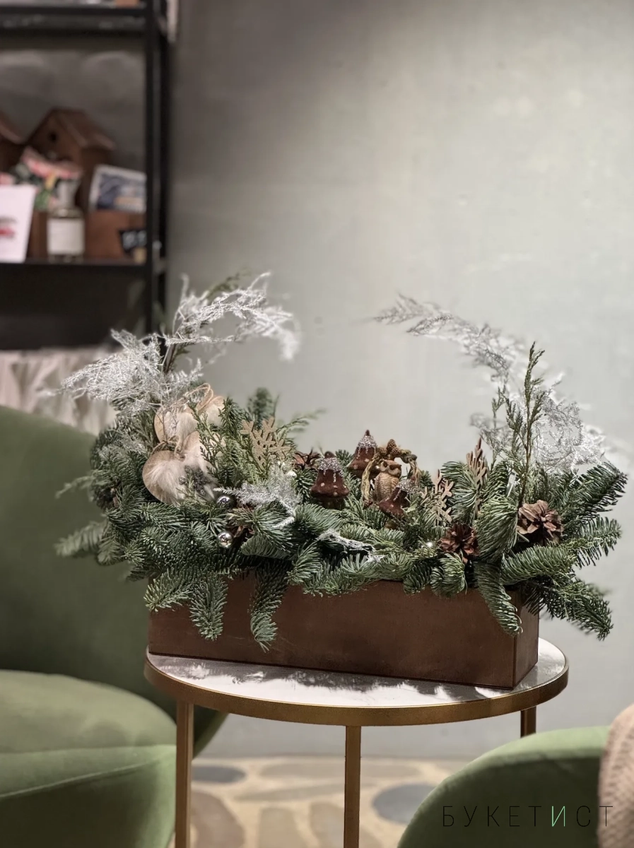 Мы в Букетисте очень любим создавать уютный новогодний декор. А ещё мы работаем с датской елью самого высокого качества — наши изделия не осыпаются через неделю и выглядят так, как будто вы только-только сорвали свежую еловую веточку в лесу.