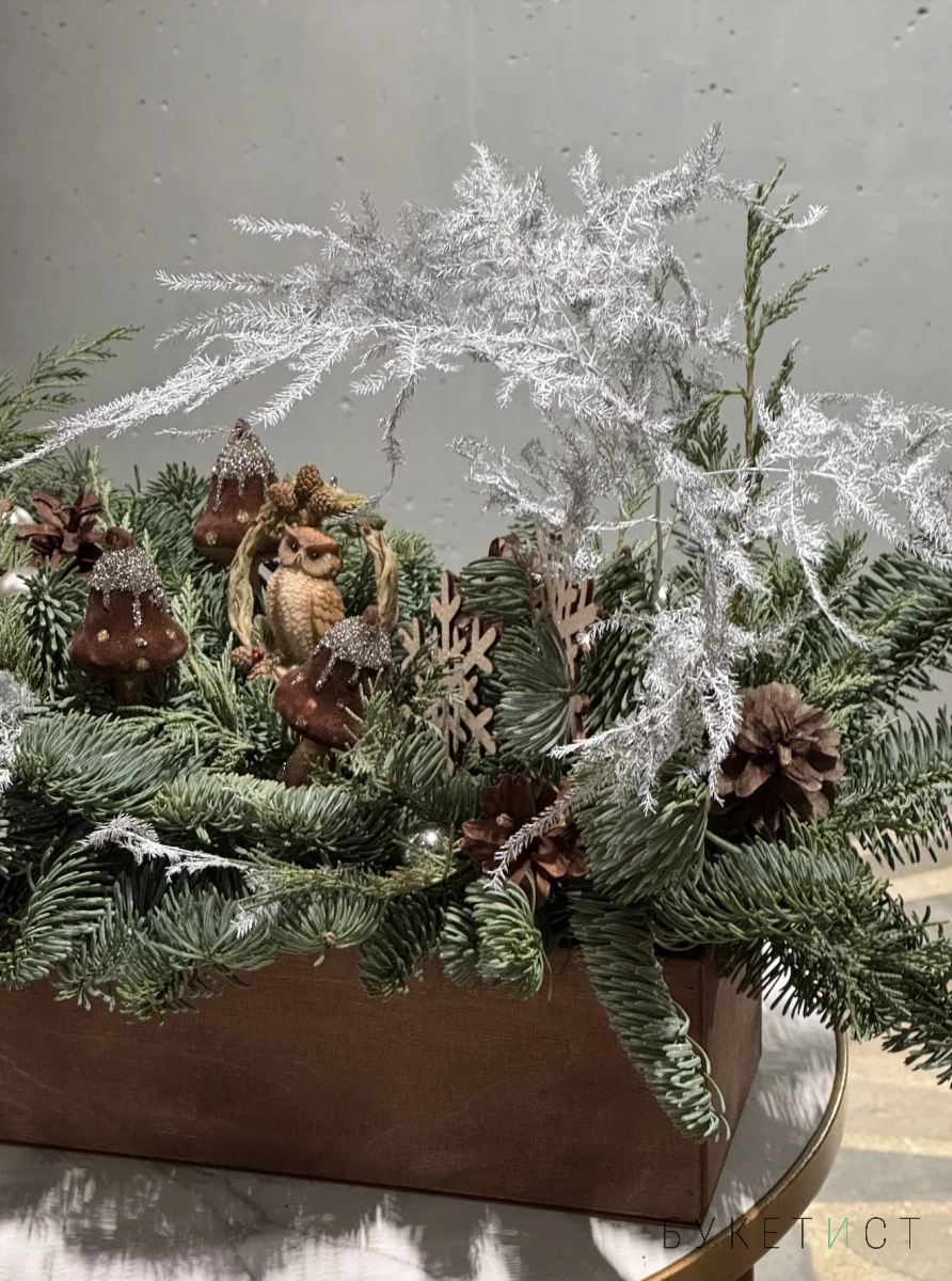Каждая композиция создаётся заботливыми руками наших фей-флористов: живые ветви ароматной ели устанавливаются в специальный материал, пропитанный водой - это позволяет изделию держать форму и сохранять свежесть как можно дольше. Объёмные игрушки добавляют особого волшебства - совсем как в рождественском кино ❤️