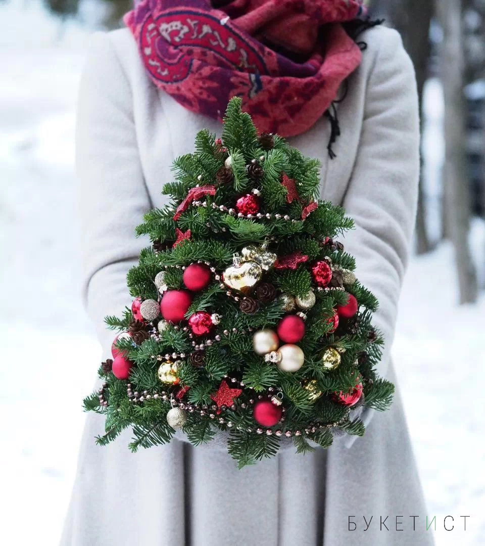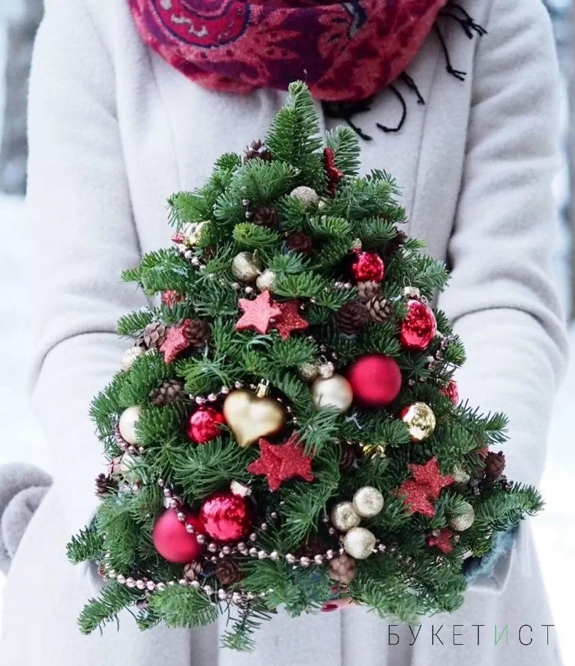 Каждая ёлочка создаётся волшебными руками наших фей-флористов: живые ветви ароматной ели устанавливаются в специальный материал, пропитанный водой - это позволяет изделию держать форму и сохранять свежесть как можно дольше. Украшения аккуратно крепим на специальный клей - уровень эстетического удовольствия просто зашкаливает ❤️