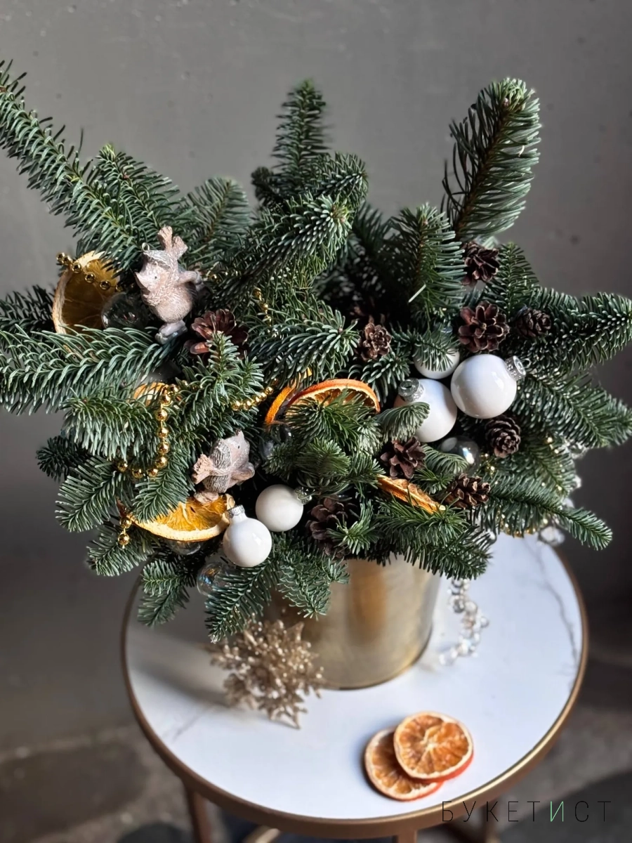 Мы в Букетисте очень любим создавать уютный новогодний декор. А ещё мы работаем с датской елью самого высокого качества — наши изделия не осыпаются через неделю и выглядят так, как будто вы только-только сорвали свежую еловую веточку в лесу.