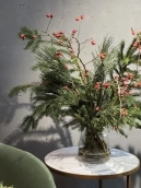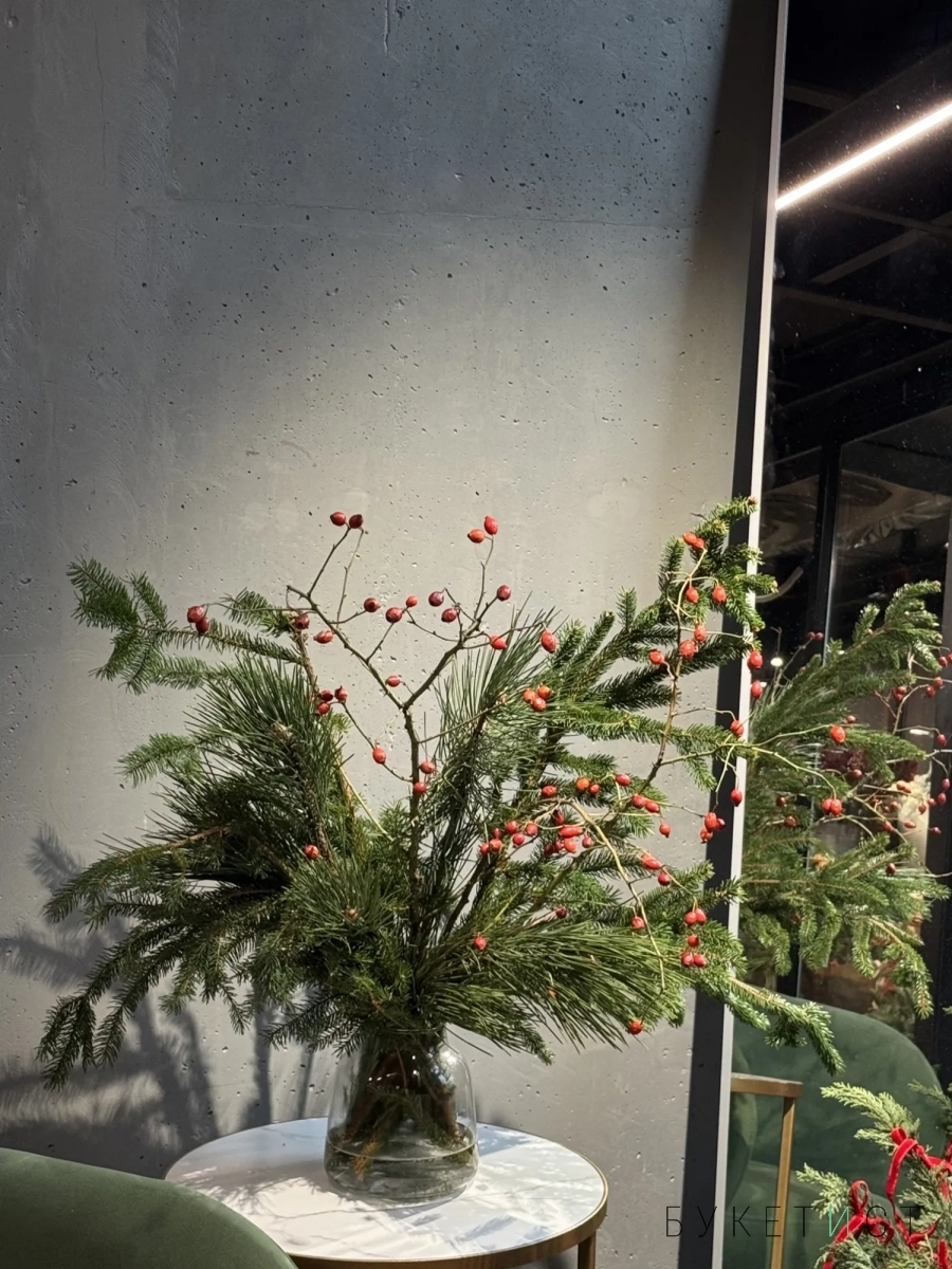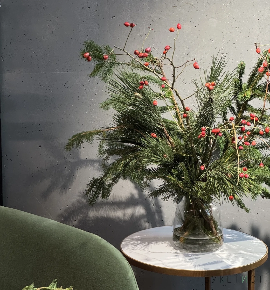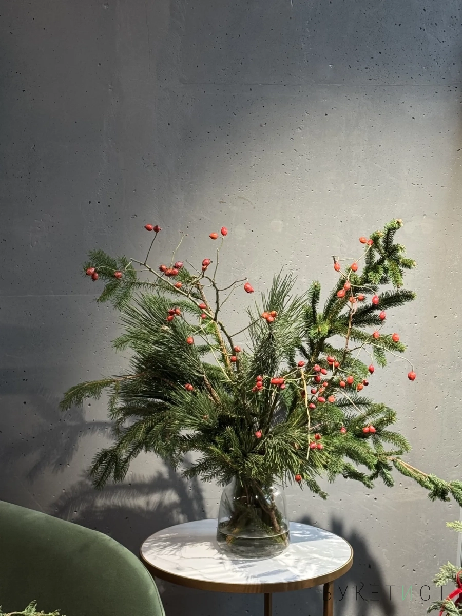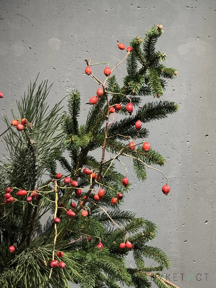 Иногда достаточно совсем немного, чтобы преобразить целое пространство — например, поставить идеальные ветки Канадской ели (3 шт), длинноигольчатой сосны (3 шт) и веток шиповника (3 шт) в свою любимую вазу. По желанию дополним сосновыми ветками, серебристым аспарагусом или хлопком - прямо как в этом букете.