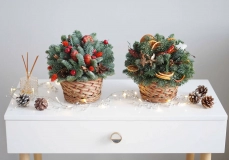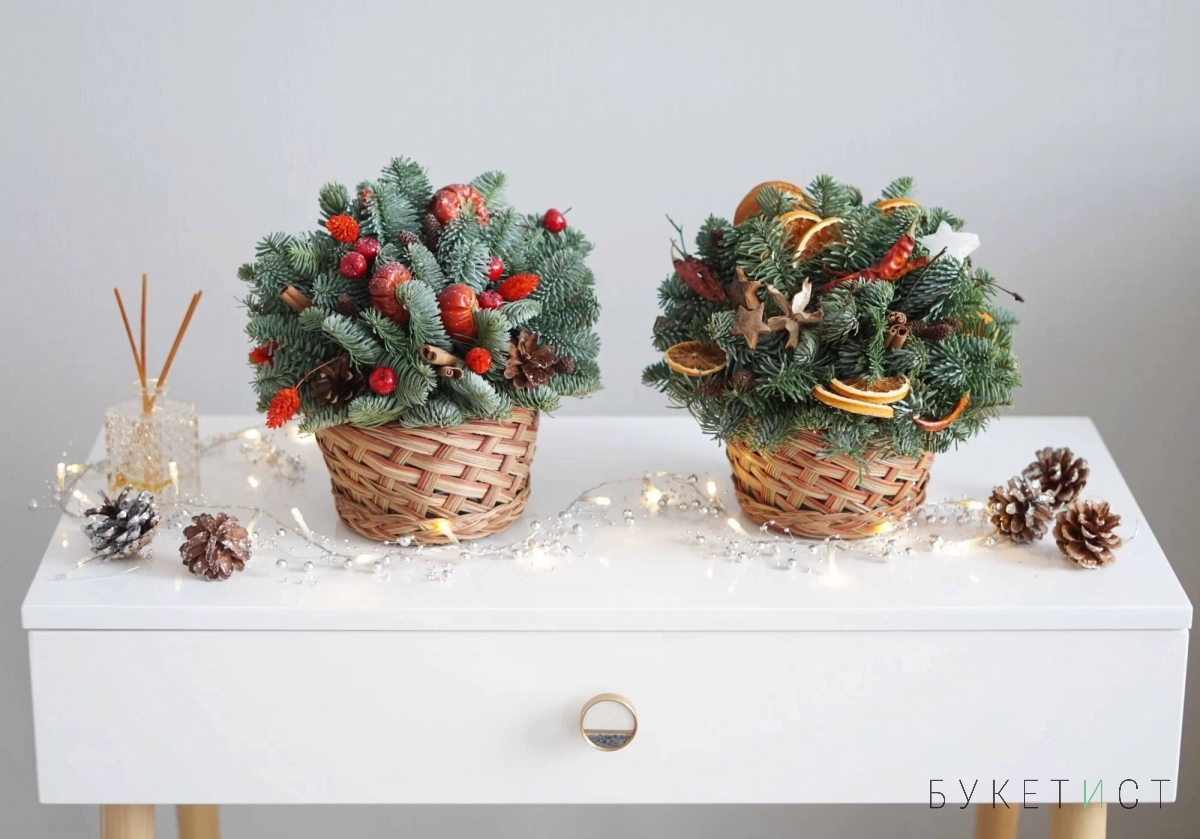 Мы в Букетисте очень любим создавать уютный новогодний декор. А ещё мы работаем с датской елью самого высокого качества — наши изделия не осыпаются через неделю и выглядят так, как будто вы только-только сорвали свежую еловую веточку в лесу.