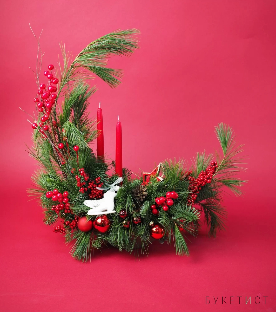 Мы в Букетисте очень любим создавать уютный новогодний декор. А ещё мы работаем с датской елью самого высокого качества — наши изделия не осыпаются через неделю и выглядят так, как будто вы только-только сорвали свежую еловую веточку в лесу.