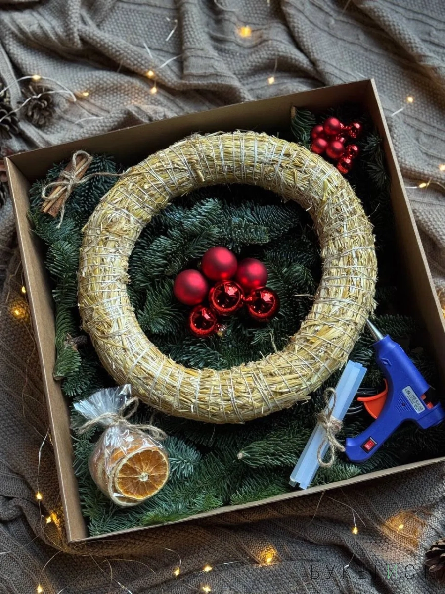 Праздник близко, а аромата ёлочки нет, как и новогоднего настроения? Значит, пора создать его своими руками! Попробуйте сделать еловый венок и погрузиться в настоящую атмосферу волшебства — всё необходимое уже есть в этой коробочке:
