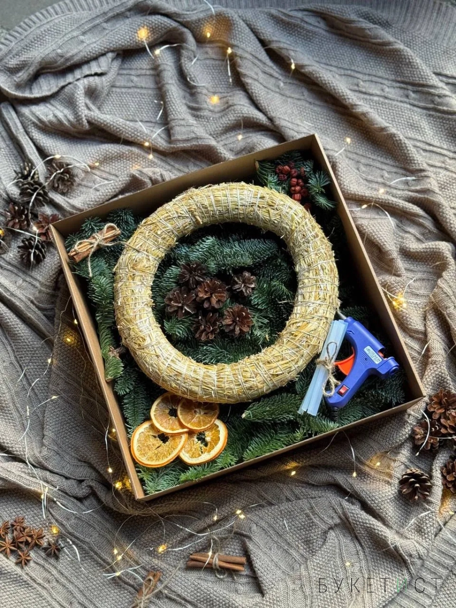 Праздник близко, а аромата ёлочки нет, как и новогоднего настроения? Значит, пора создать его своими руками! Попробуйте сделать еловый венок и погрузиться в настоящую атмосферу волшебства — всё необходимое уже есть в этой коробочке: