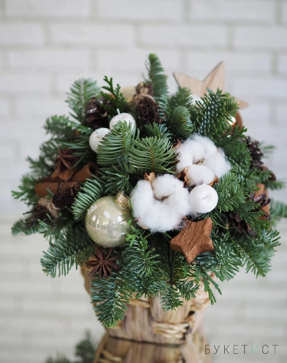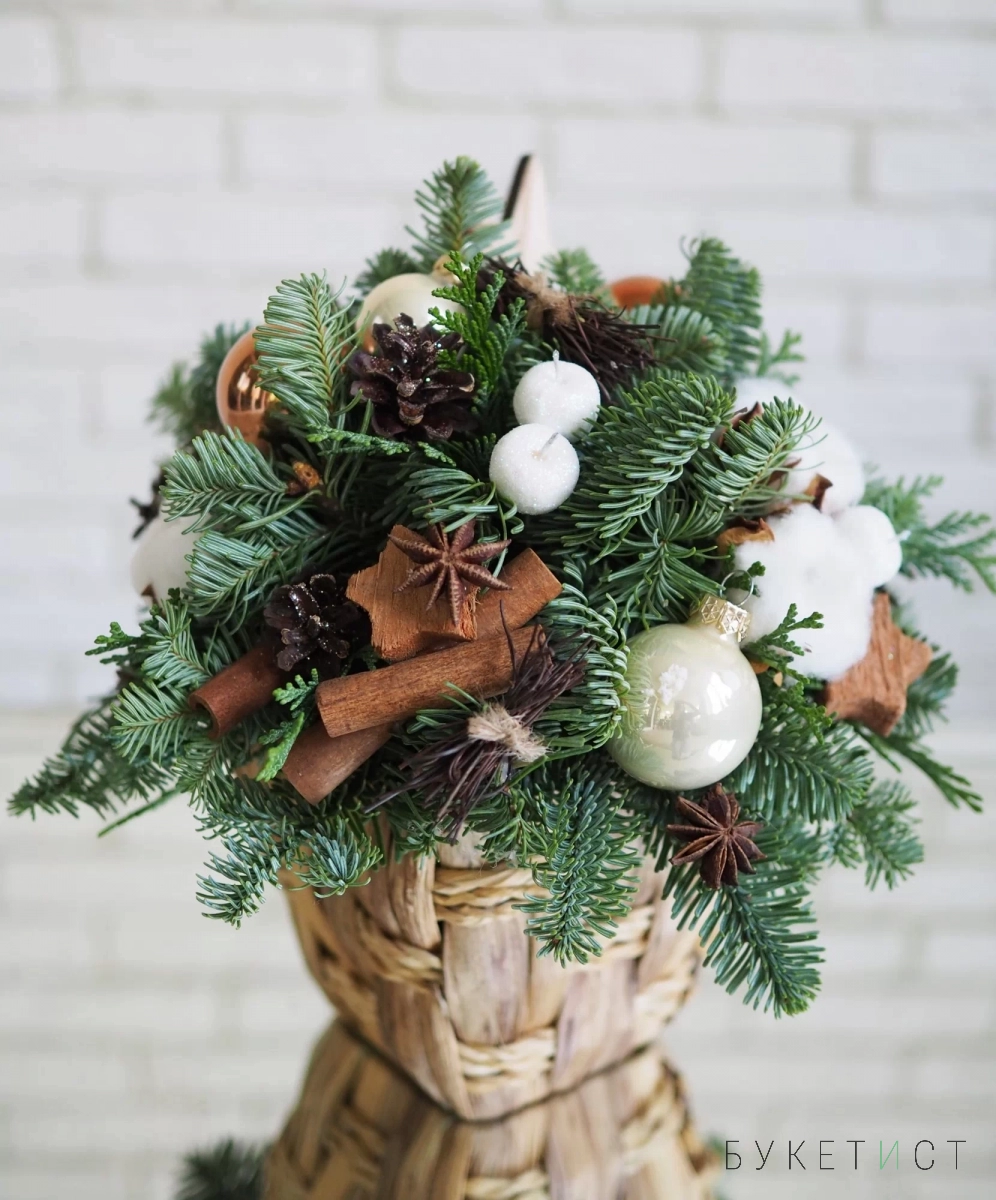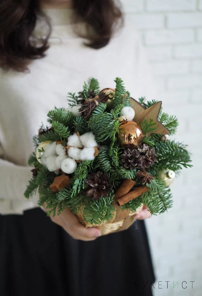 Мы в Букетисте очень любим создавать уютный новогодний декор. А ещё мы работаем с датской елью самого высокого качества — наши изделия не осыпаются через неделю и выглядят так, как будто вы только-только сорвали свежую еловую веточку в лесу.