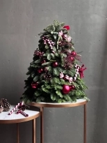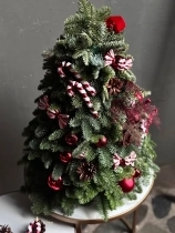 Каждая ёлочка создаётся волшебными руками наших фей-флористов: живые ветви ароматной ели устанавливаются в специальный материал, пропитанный водой - это позволяет изделию держать форму и сохранять свежесть как можно дольше. Украшения аккуратно крепим на специальный клей - уровень эстетического удовольствия просто зашкаливает ❤️